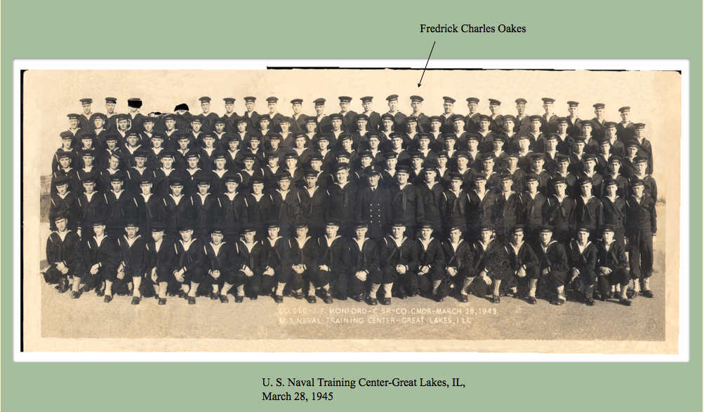 He served on the USS Intrepid (Essex Class) in the South Pacific and Japan. He said he was a messenger and often was sent to the tower. Below is some background on the ship around the time Charles Oakes served. The picture is of the USS Intrepid in November, 1944, in the Philippine Sea, some months before Charles Oakes joined it.