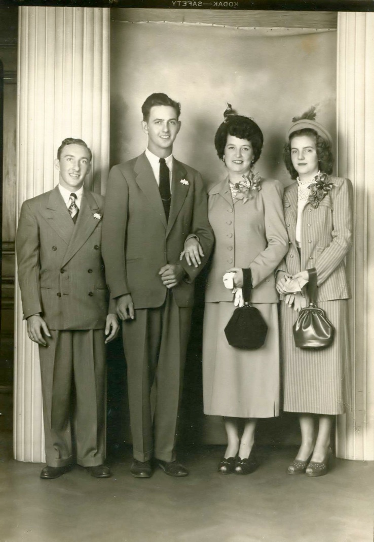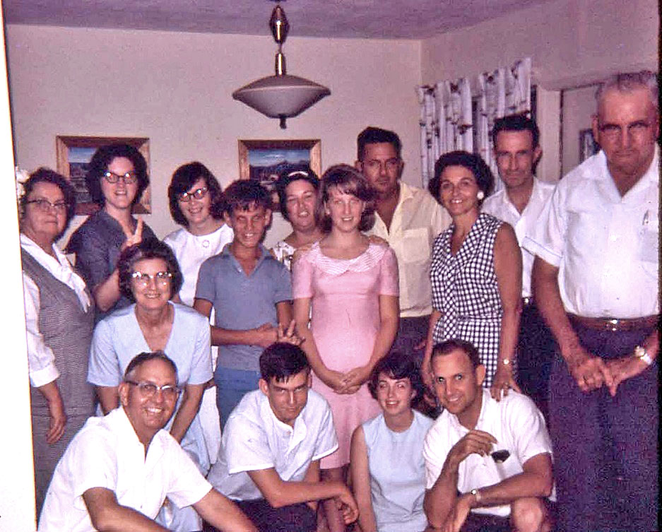 Margie and Fred Oakes. Mary Jo by post, Lin next to Margie and Dale small boy, Wichita Falls. |