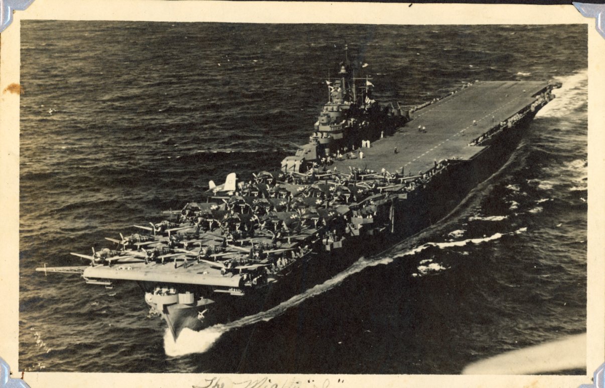 22 Feb 45–10 July 1946 Enlisted in U. S. Navy short of his 18th birthday and high school graduation in Vicksburg, MS. Basic training was in Shoemaker, CA. His Service No. was 848 40 04. He wass listed as joining the USS Intrepid May 25, 1945, having transferred from TADCEN, Shoemaker, CA. He was listed as “Received on Navy Ship 3149” Shoemaker, CA. the first day of July 1945. The first day on board was June 6, 1945. The 1st day of August 1945, he was listed as “Transferred U. S. Naval Supply Depot, Navy 3002, Com Ser For 7th Flt, STO 2358-45 to PCE (R) 848.” Date of transfer is 28th. The Intrepid was captained by Captain Giles E. Short.
