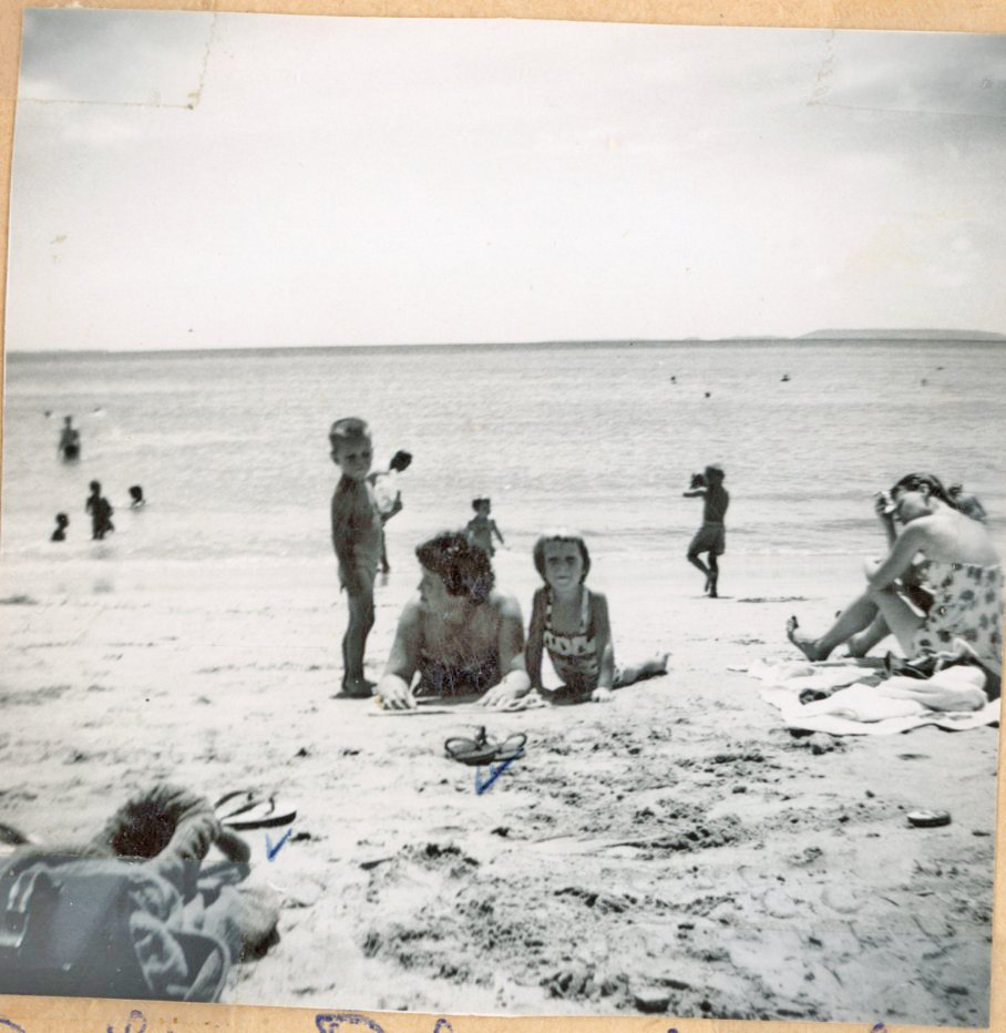 Dale, Mary Jo, and Lin Oakes on Okinawa beach.