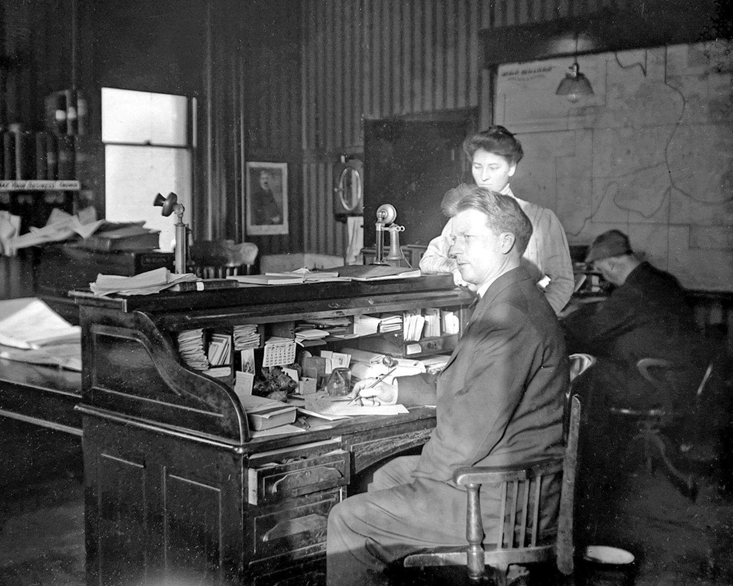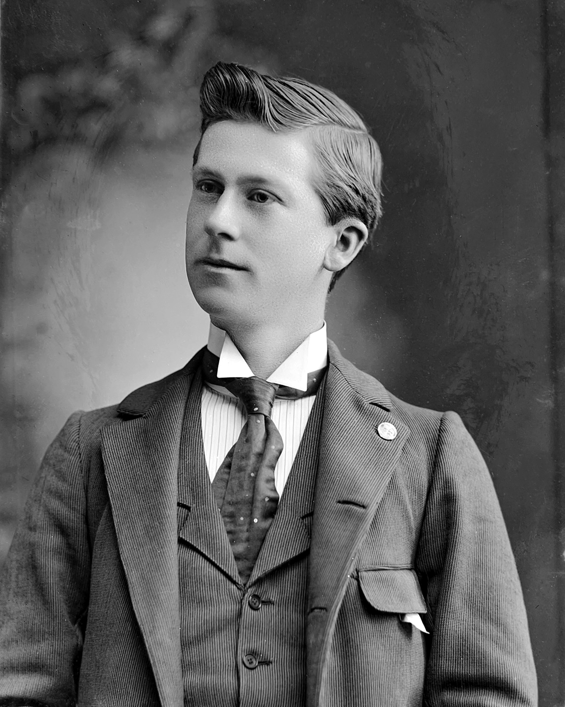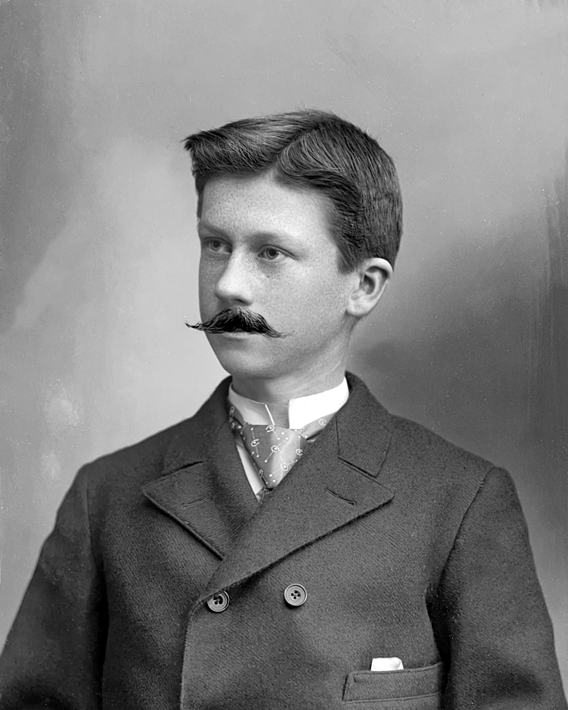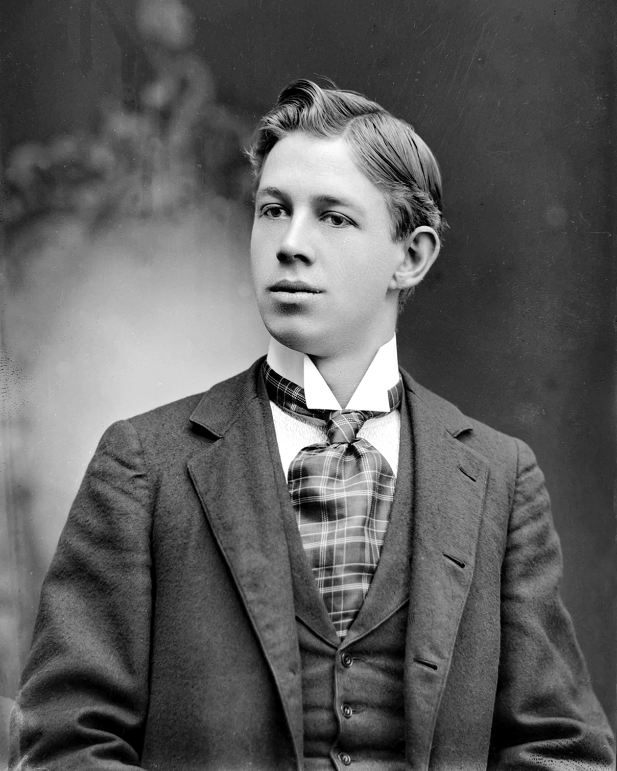 16 There are two telephones on the desk, both candlestick phones which had their beginings in late 1890s. The one on right is older model and the one on the left is newer and has rotatable mouth piece. In the calendar on the desk, it is clear that the 1st is a Wednesday and there are 31 day in that month. Likely this picture was taken after he became a clerk for the city of Des Moines. Dates available that could match calendar are; July 1903, Nov 1904, March 1905, Aug 1906, Jan and July 1908. The name of the month looks short. I propose July 1903 early in his tenure as the Clerk. There is a map in the background that looks official. It is a map of Des Moines. See 1899 map below. Also below are two photos of photographer's son, Alvin Cecil. Frisk who bears some resemblance to man in picture.
