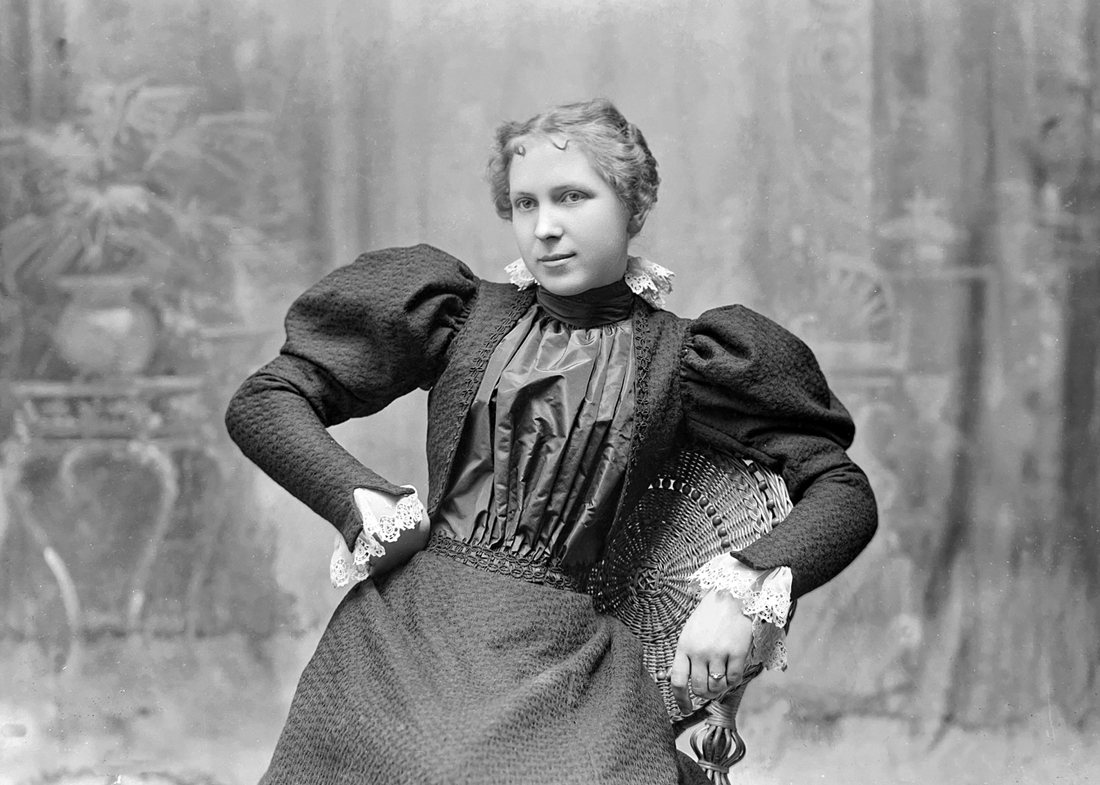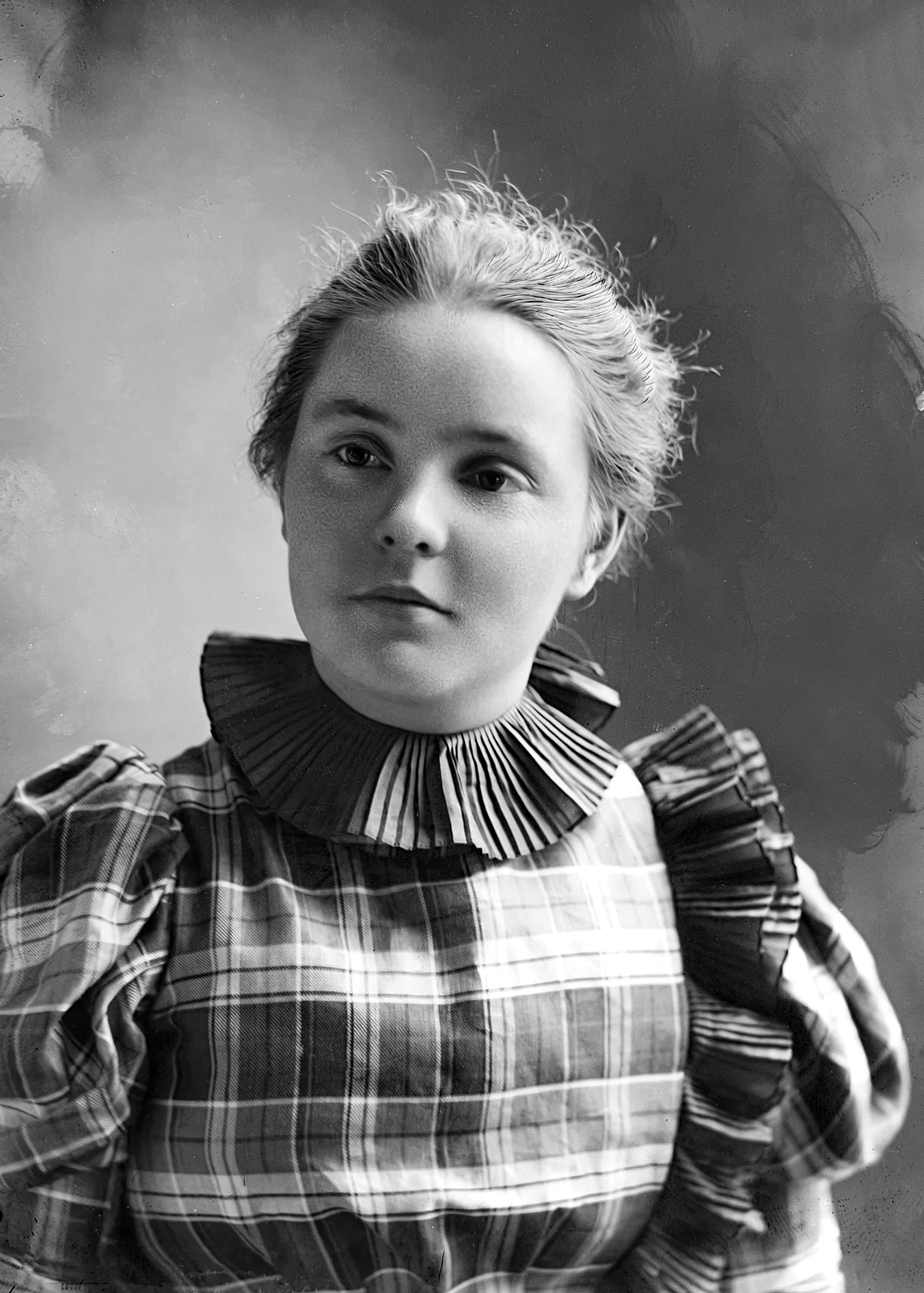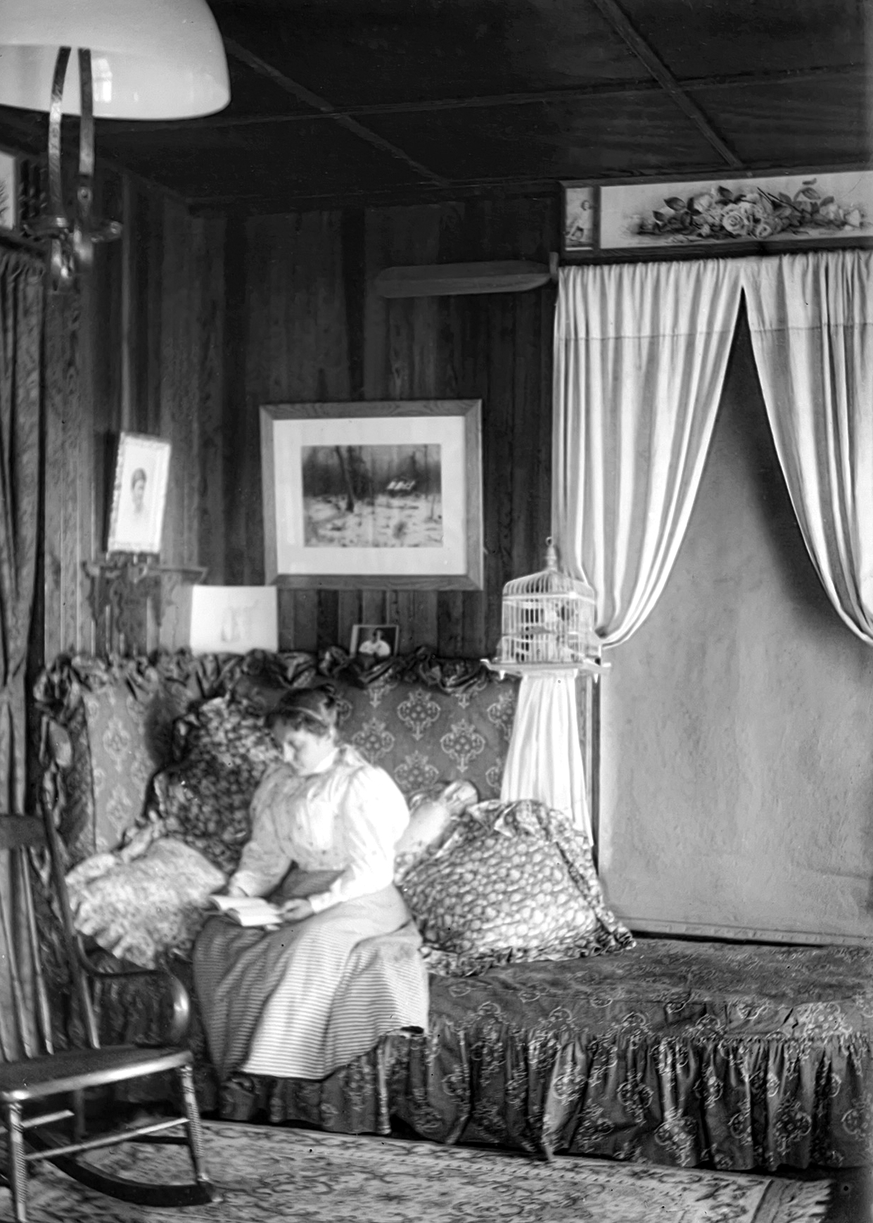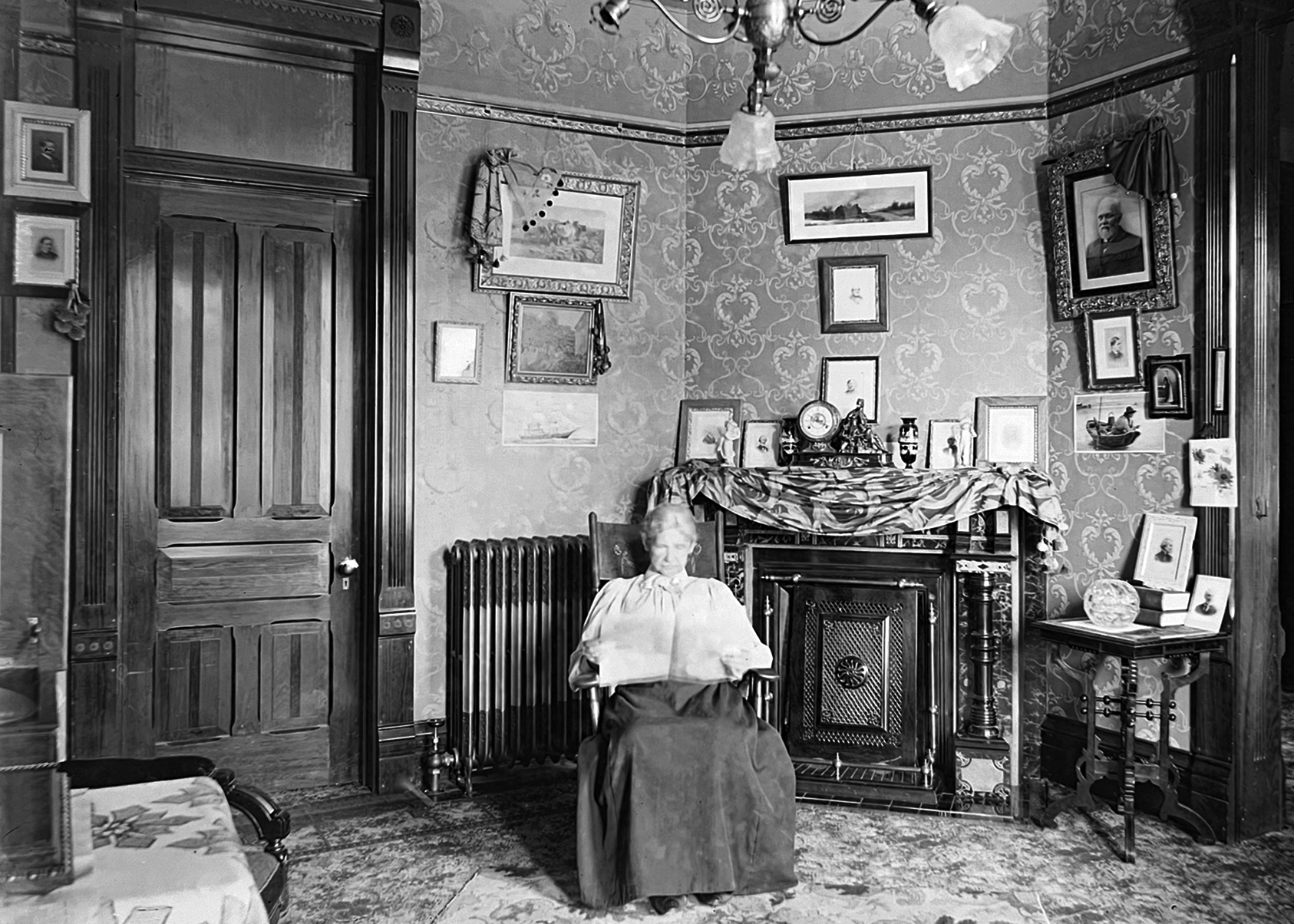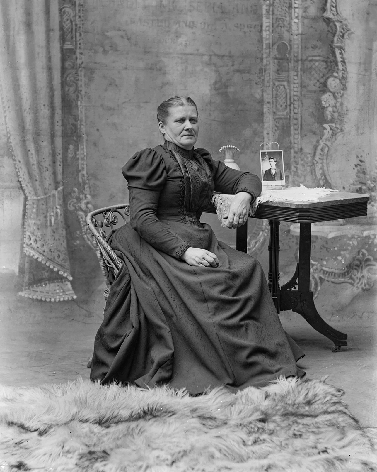 09 Catherine Anderson Frisk, mother of Alvin and Edwin Frisk. Note simlar photo of Edwin from this collection on the table. Photos background same. |