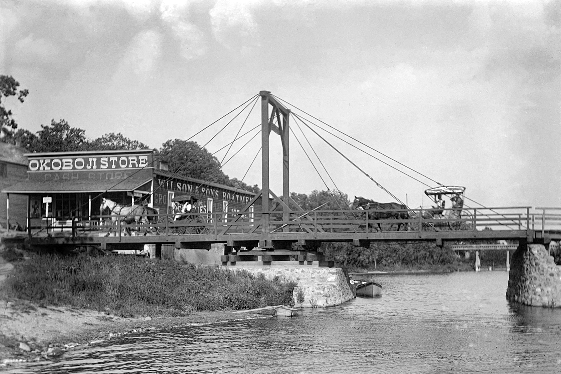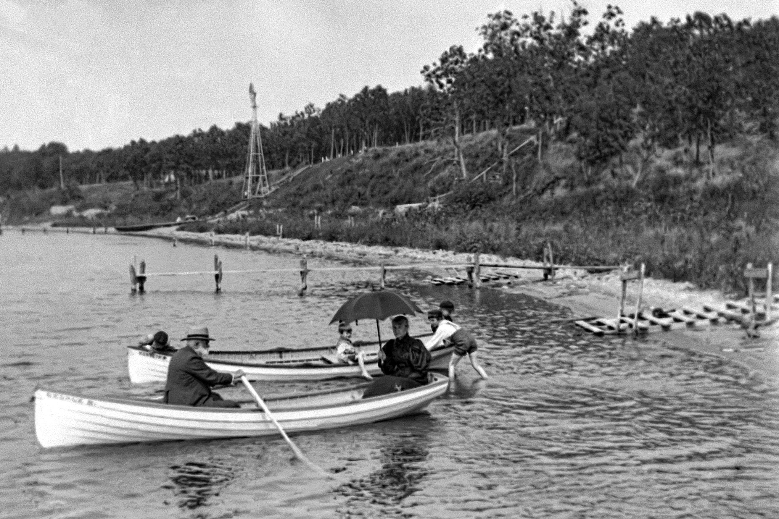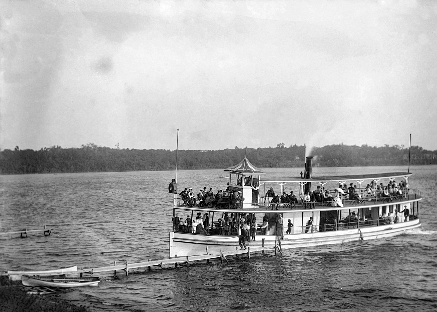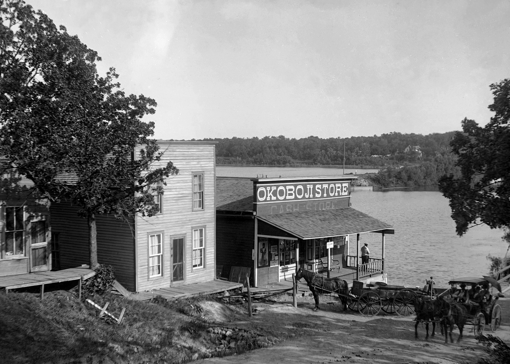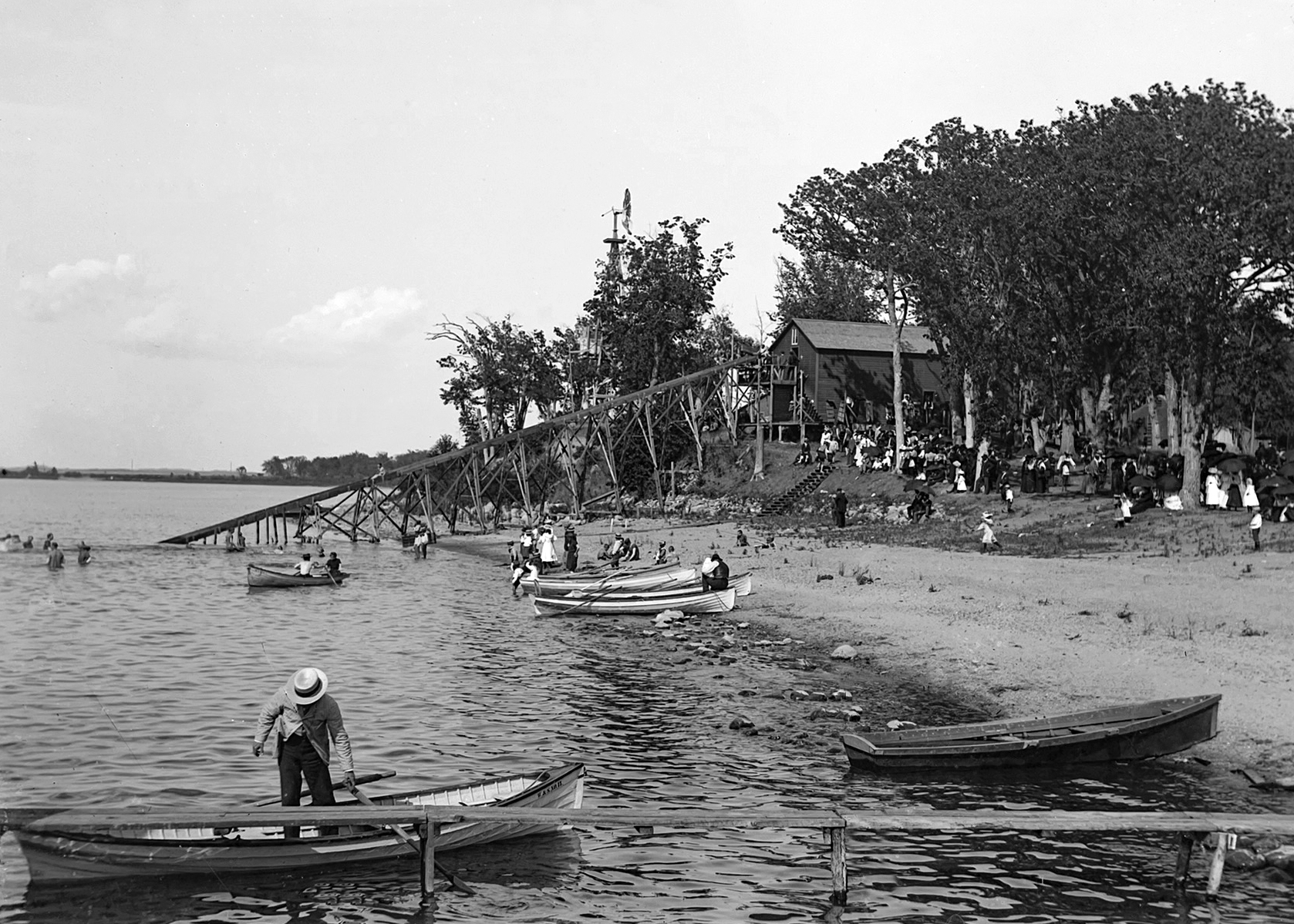 01 The Steamer Okoboji on Spirit Lake in Iowa. She was built with parts and engine from the Steamer Manhattan. An early photo as evidence by lack of name on hull yet. Email to Dennis Murphy: "The Manhattan was constructed in 1884 by a Captain May for operation on West Okoboji Lake. The original name of the ship was the "Ben Lennox". In or around 1894 the ship was sold to the owners of the grand hotel "Manhattan". The Manhattan operated as a transportation vessel for the hotel in our road poor area until 1899 when she became unseaworthy and was broken up. Her parts and pieces were used in the construction of a similar vessel named "Okoboji". We have the red and green running lights from the boats on display at our lowa Great Lakes Maritime Museum. I operate a replica of those old steamers named Okoboji Queen II. Also I am curator of the Maritime Museum. The steam boat era at our lakes coincided with other midwestern lakes. The coming of the trains in the 1880's brought tourists and the boats carried them to all points on our lakes. Stephen Kennedy: Iowa Great Lakes Maritime Museum." |