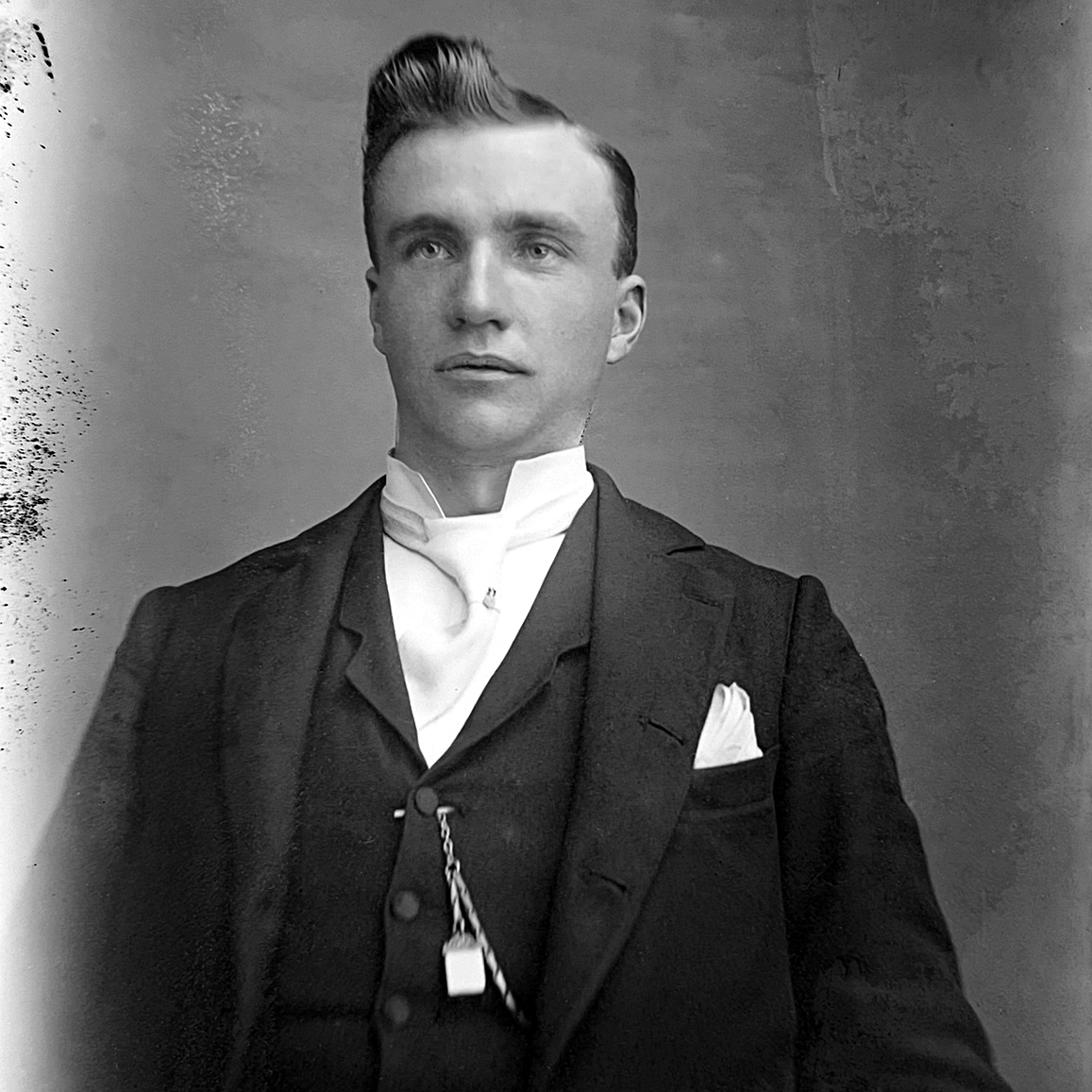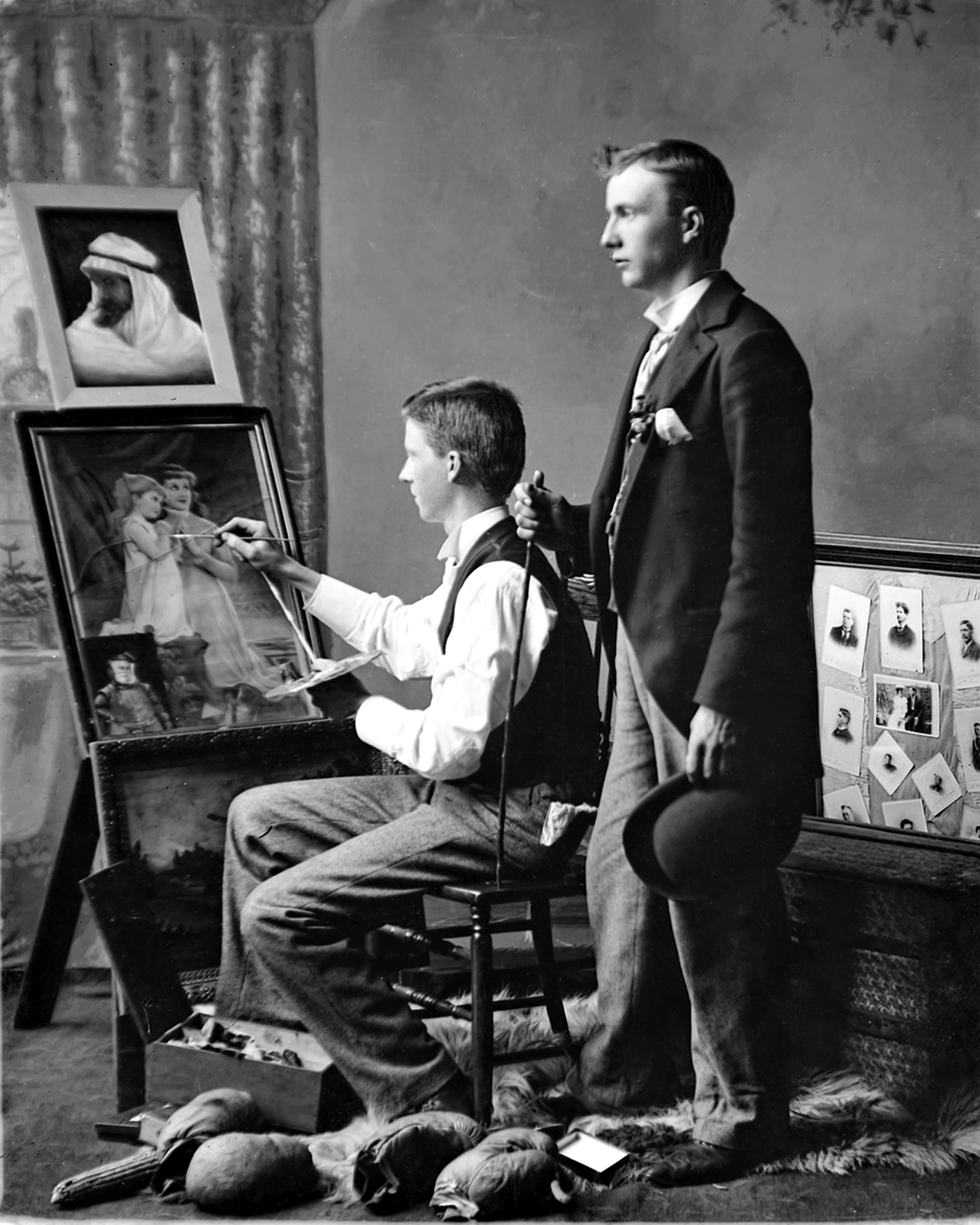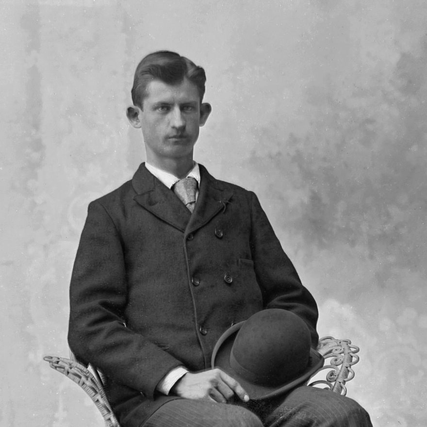 The photographer was likely Alvin Cornelius Frisk, who practiced in Des Moines Iowa. He was born in Galva, IL on July 31, 1877, to Erick P. and Catherine Anderson Frisk. Both of his parents were born in Sweden. Father in Helsinglund, Sweden. Erick died in 1889 at age 40. and Catherine in 1919. Alvin had a brother, Edwin Julius Frisk.