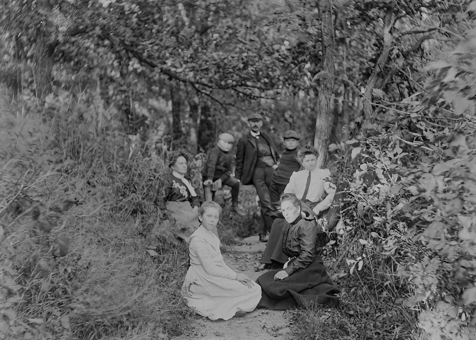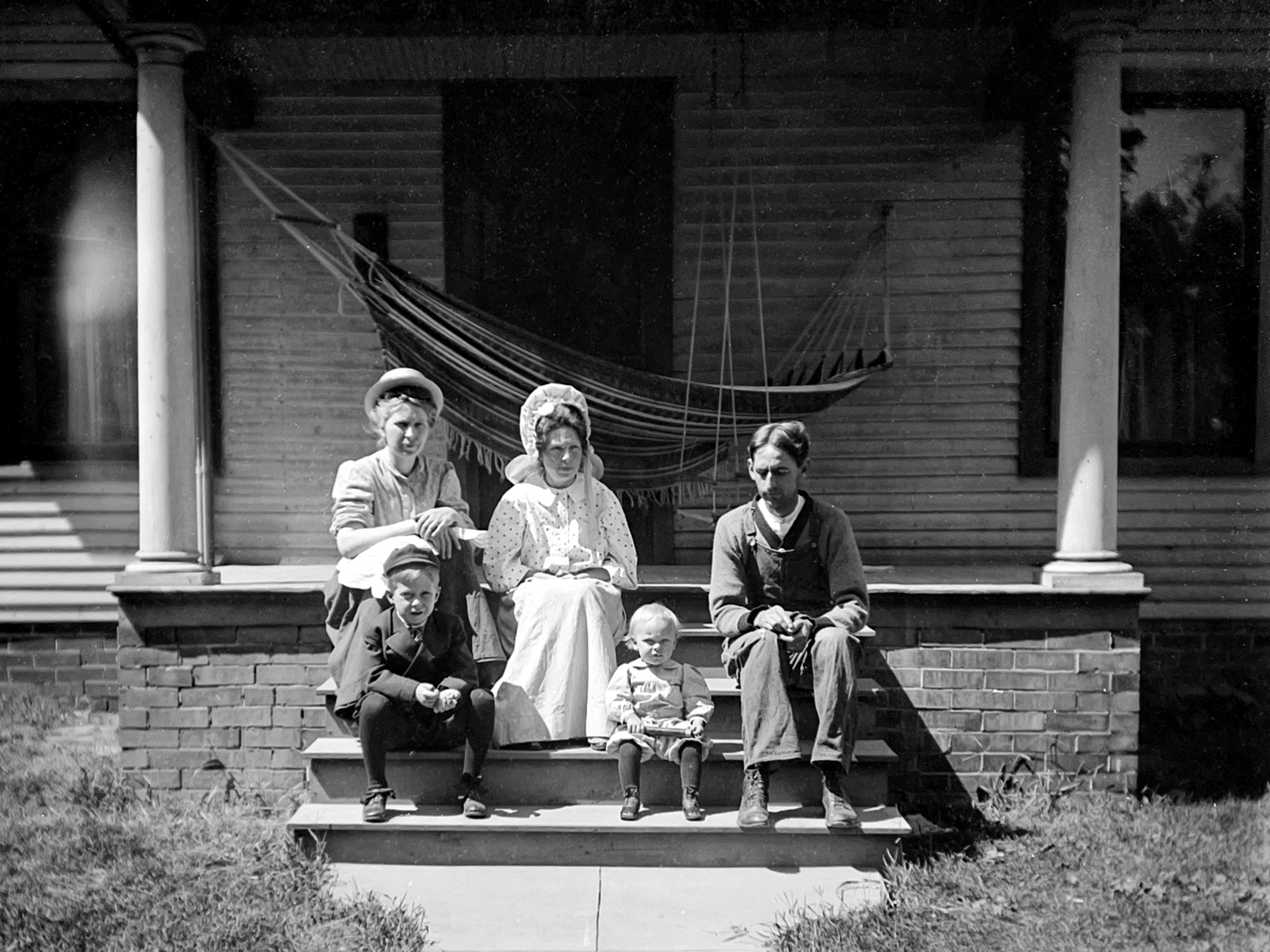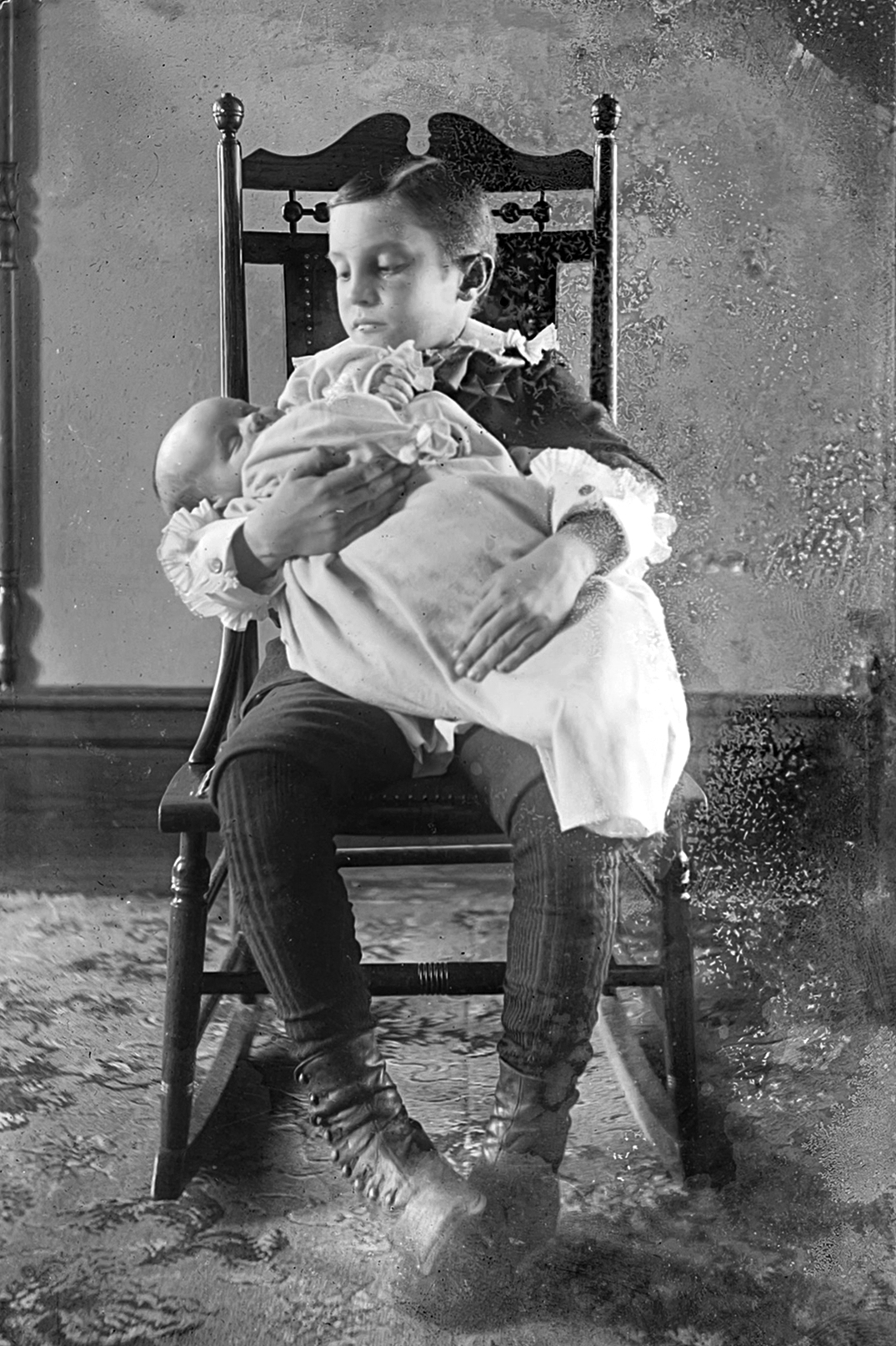Dennis Murphy, in 1974, while on the faculty of Drake University, would visit estate sales with his daughter Sarah. He was a very astute and knowledgeable collector. On one occasion he purchased a collection of plate glass negatives for $5 from the granddaughter of the photographer. He and his family later moved to Austin, Texas, and had a successful career publishing and writing a business newsletter. After his untimely death, his son, Seth, scanned and meticulosly restored the photos. He generously shared them with me. We are working to identify some of them. Here, we are making them available to the public in the hope that descendants, etc. will find them, enjoy and share information.