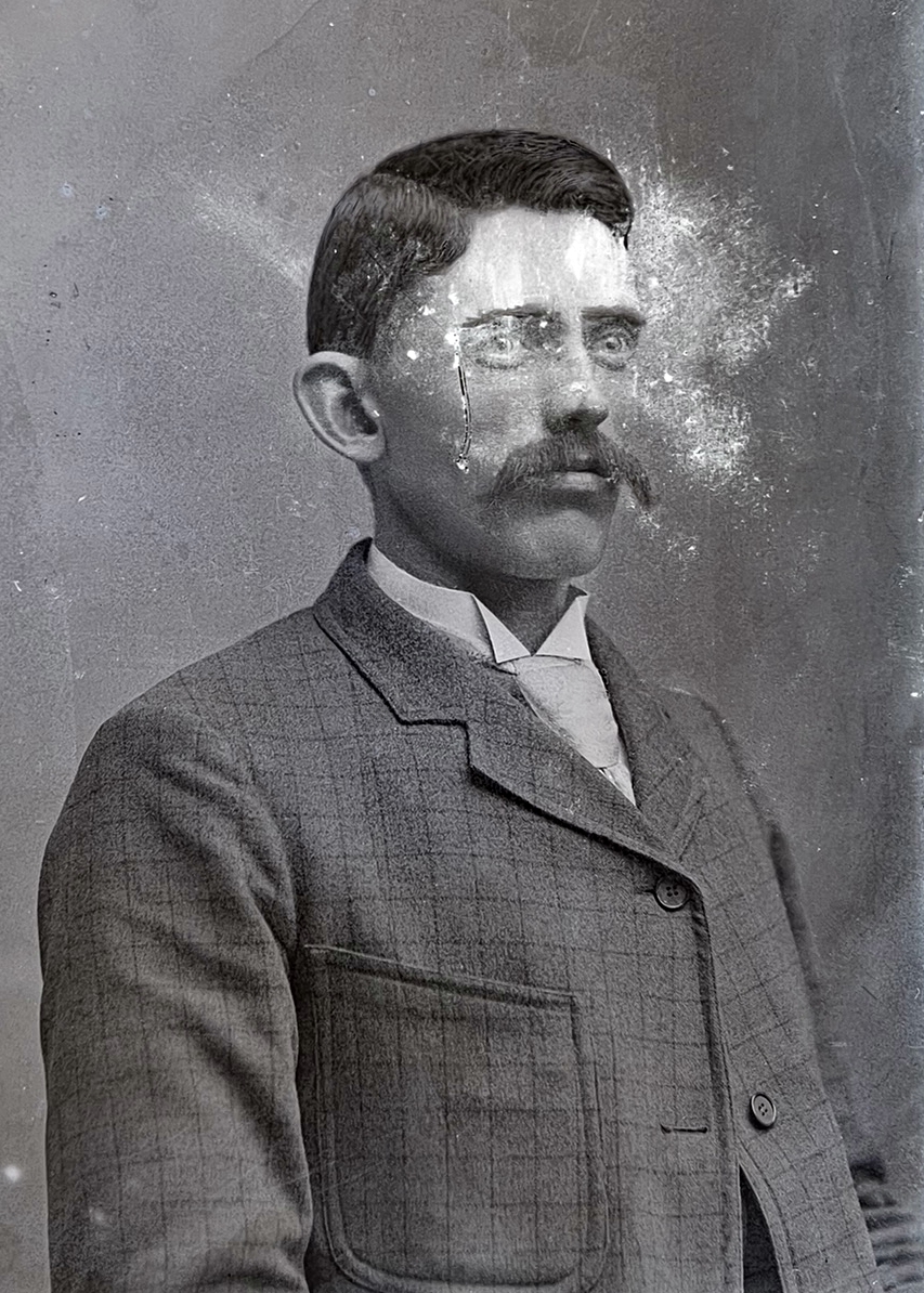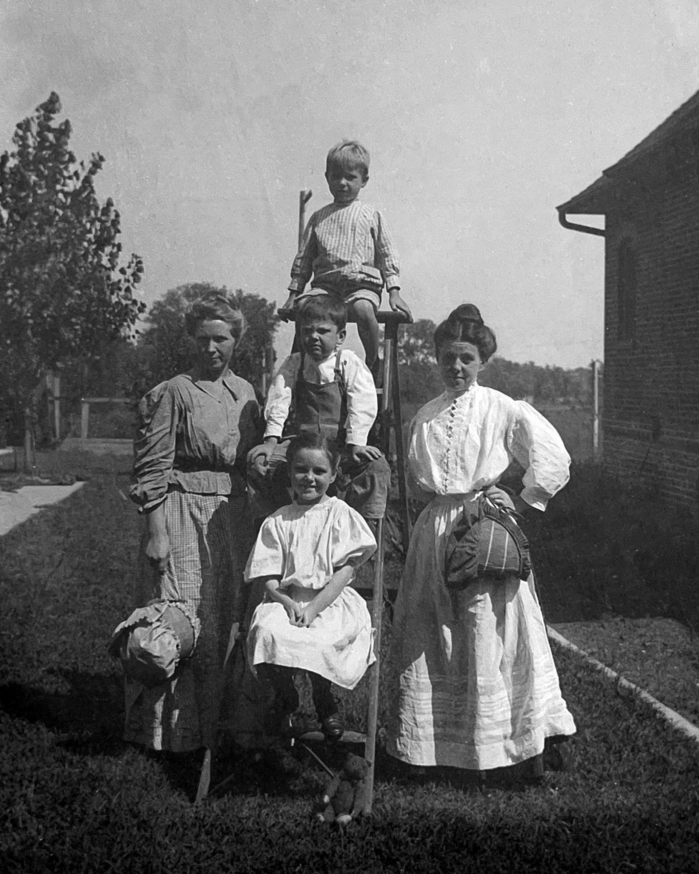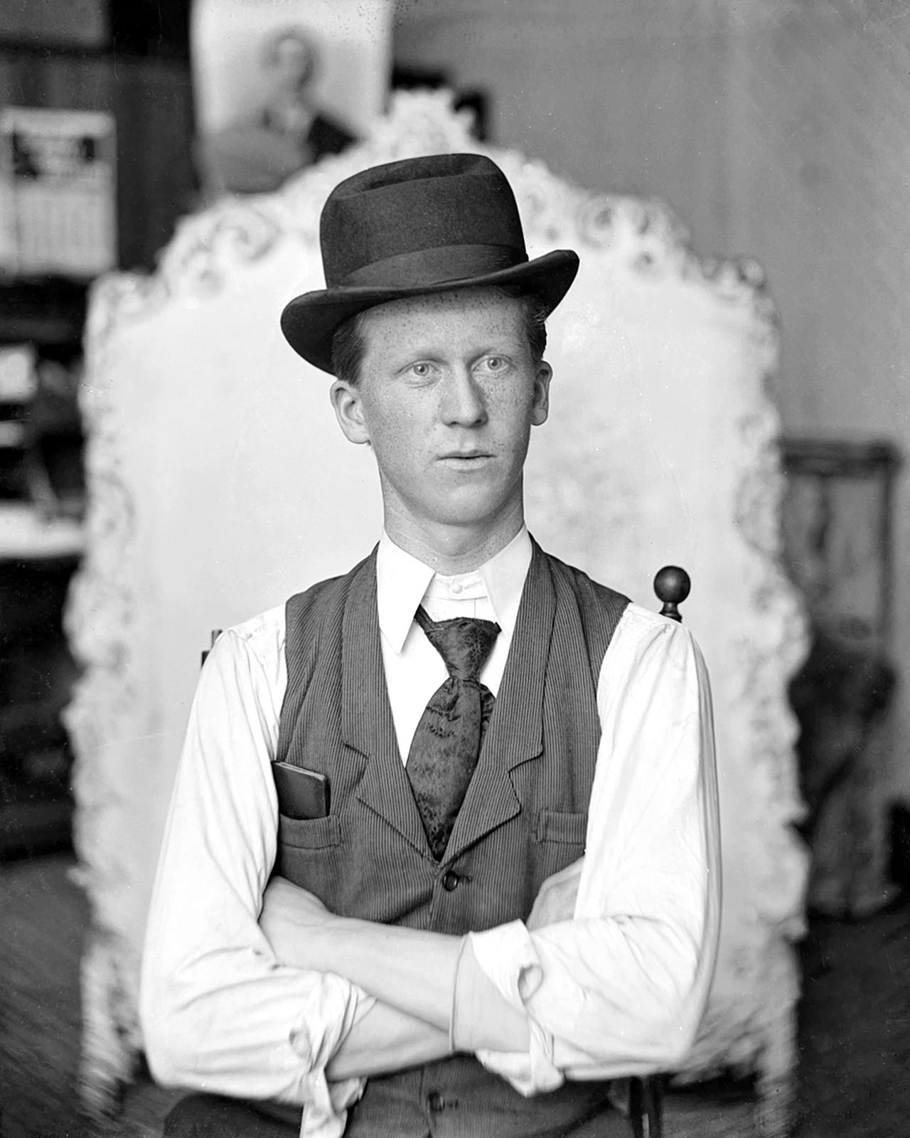 Dennis Murphy, in 1974, while on the faculty of Drake University, would visit estate sales with his daughter Sarah. He was a very astute and knowledgeable collector. On one occasion he purchased a collection of plate glass negatives for $5 from the granddaughter of the photographer. He and his family later moved to Austin, Texas, and had a successful career publishing and writing a business newsletter. After his untimely death, his son, Seth, scanned and meticulosly restored the photos. He generously shared them with me. We are working to identify some of them. Here, we are making them available to the public in the hope that descendants, etc. will find them, enjoy and share information.