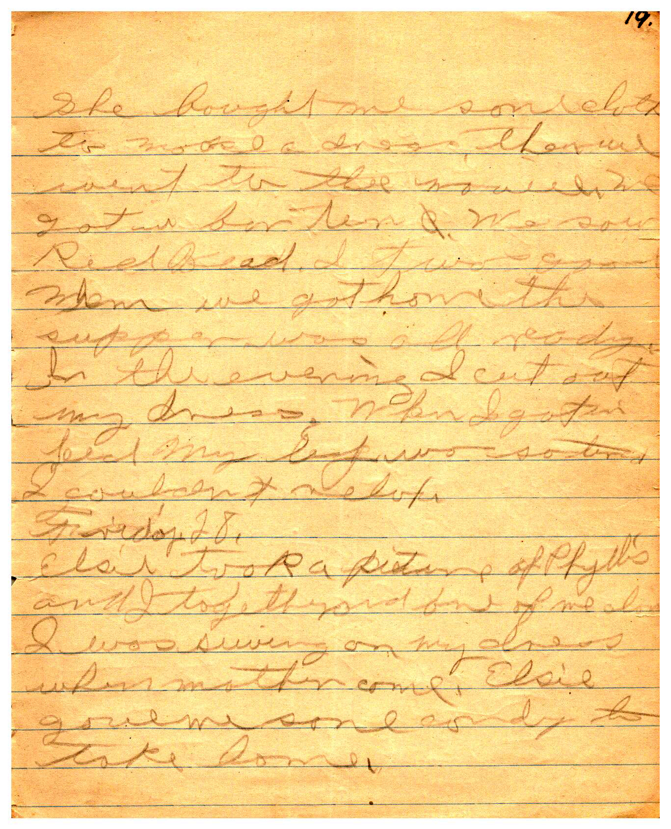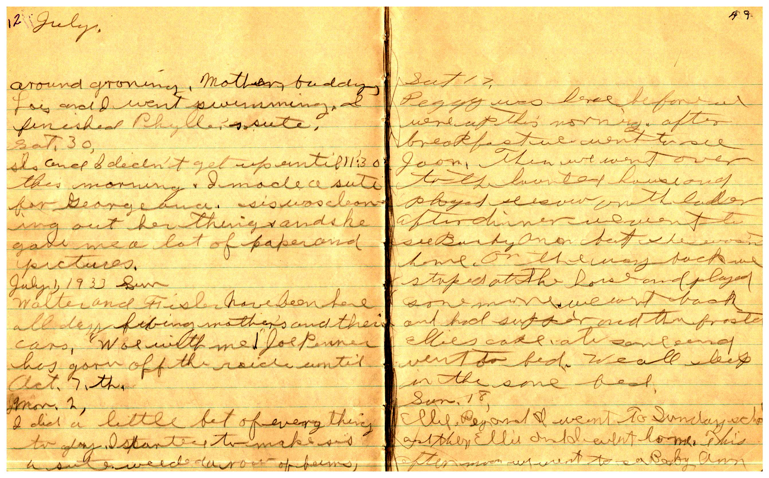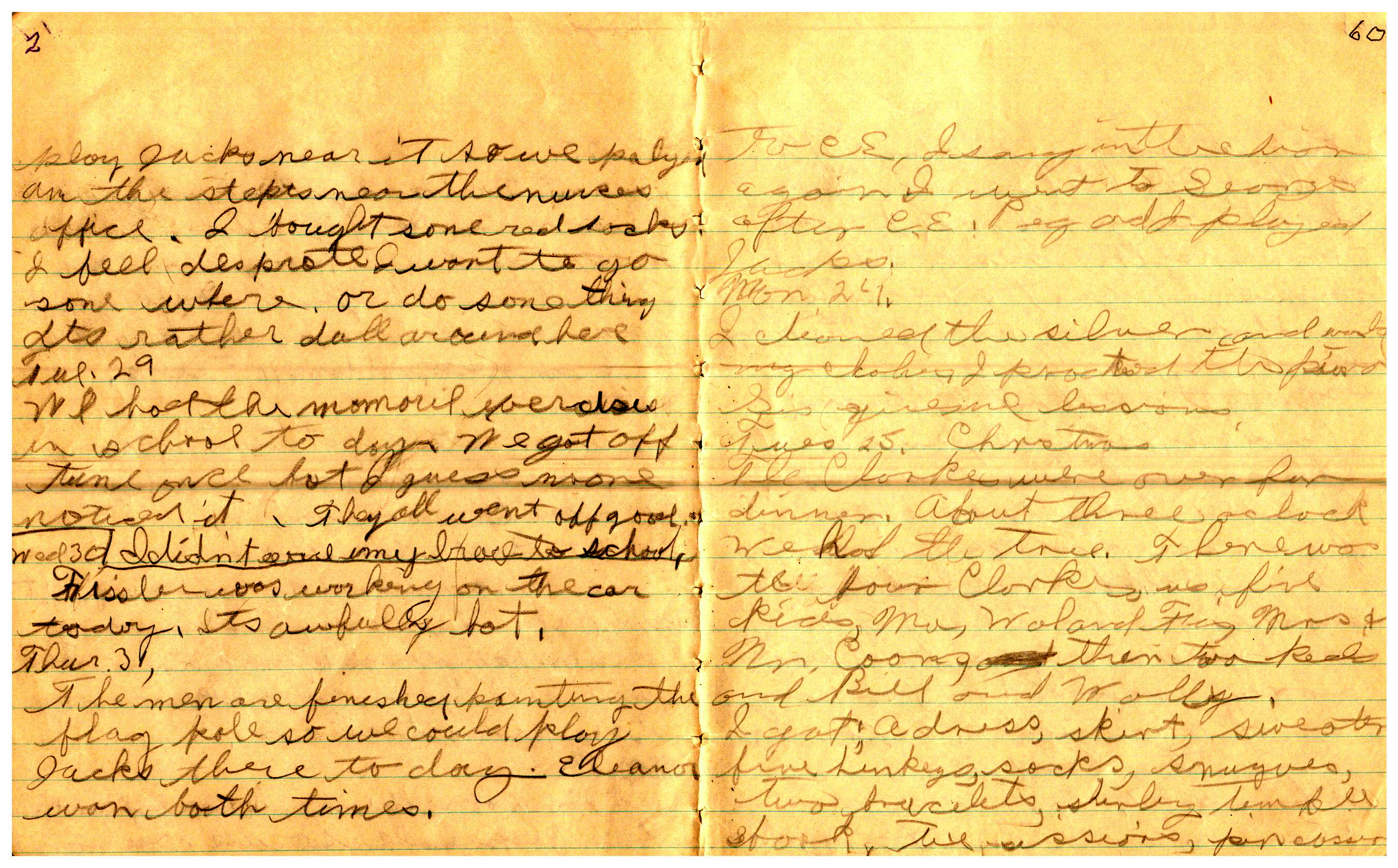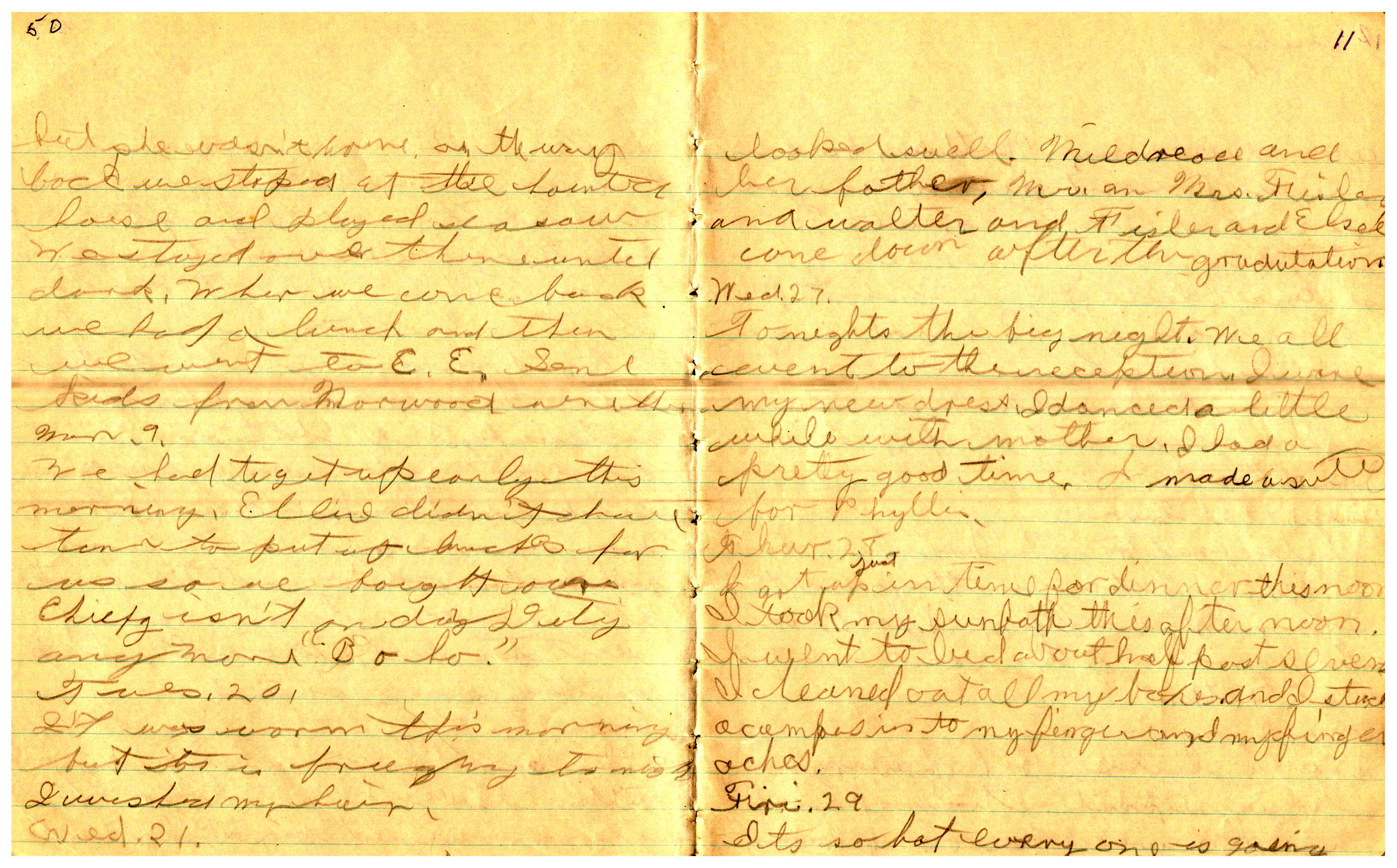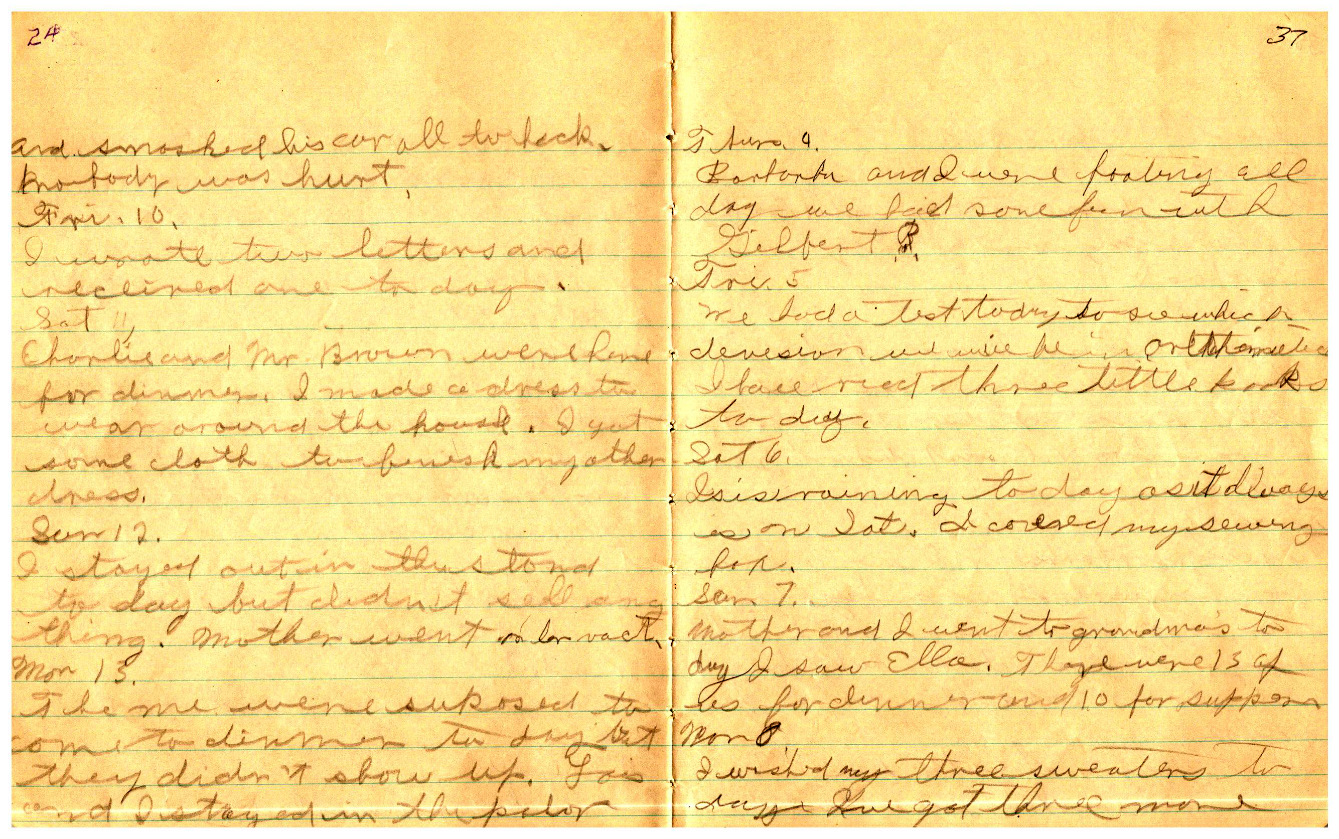 WRENTHAM—Doris Brown, born June 17, 1921, kept a diary Friday, May 25, 1934 to Thursday, December 27, 1934. The diary has been scanned and is below. You must read in a zig-zag pattern following the page numbers. It is hope her entries will be useful at clarifying events in the Brown Family and identifying people she knew in Wrentham, MA.