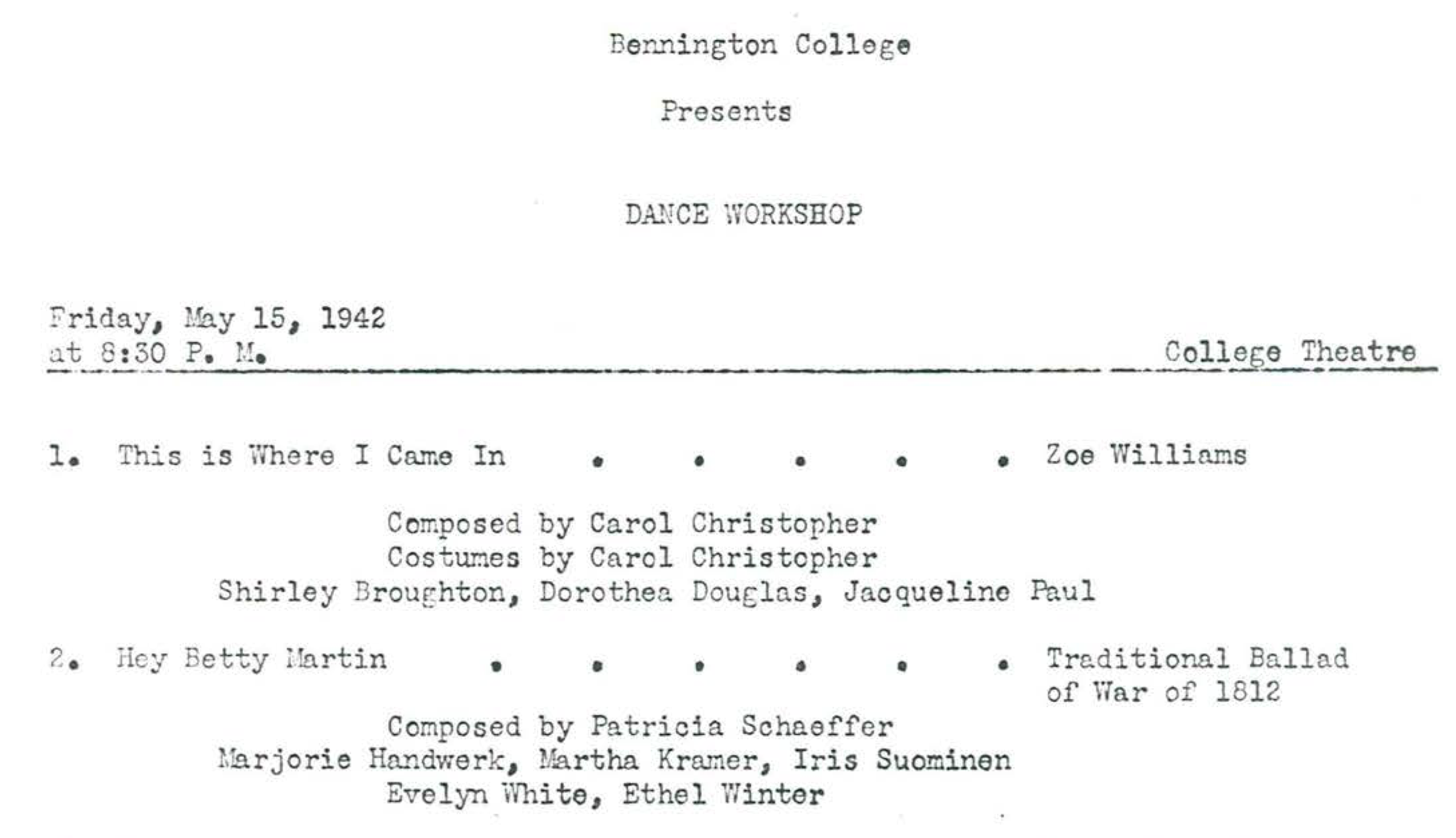 Bennington College Dance Program, 1942, Evelyn White and Ethel Winter. They performed many programs together