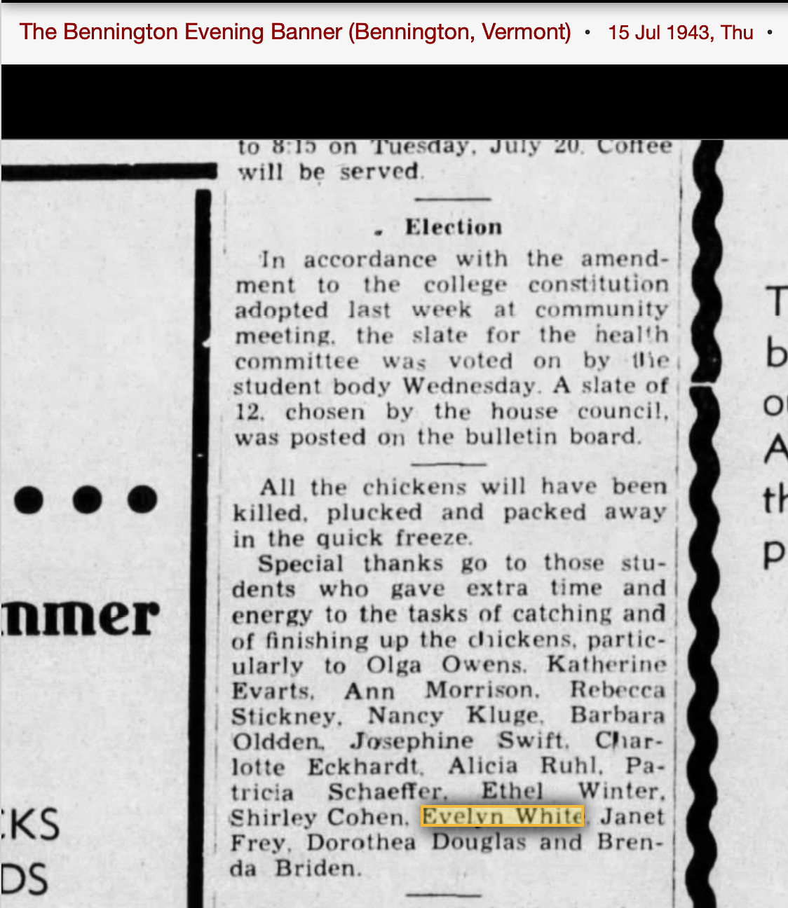 Evelyn White, Bennington, photo belonging to Ethel Winter She danced with the Katharine Dunham Dancers |