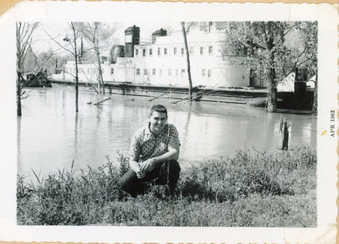 John T. Plake on Yazoo River, likely the Jacob and Moyzelle Dose house in distance. ca. 1923.