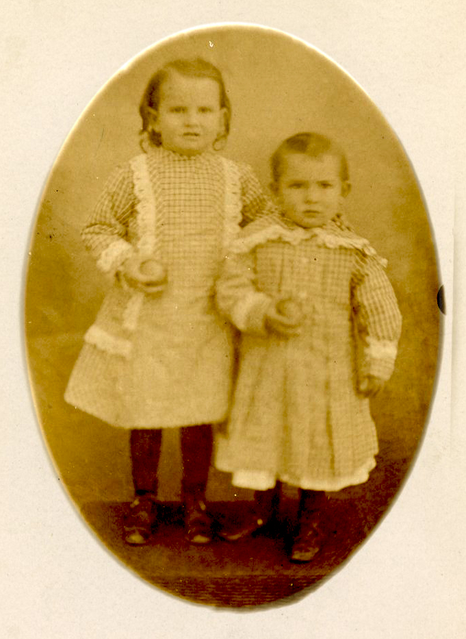 LtoR: Photo has id as Gearney Hyman & Freddie Oakes. Freddie's id is highly likely, however Gearney was 7-8 years older. That age difference is hard to accept for the two boys, however Gearney lived with Fred and his family at the time of this photo, ca 1905-06