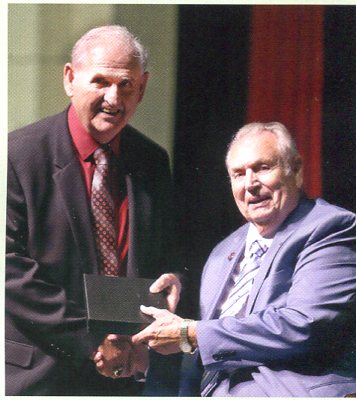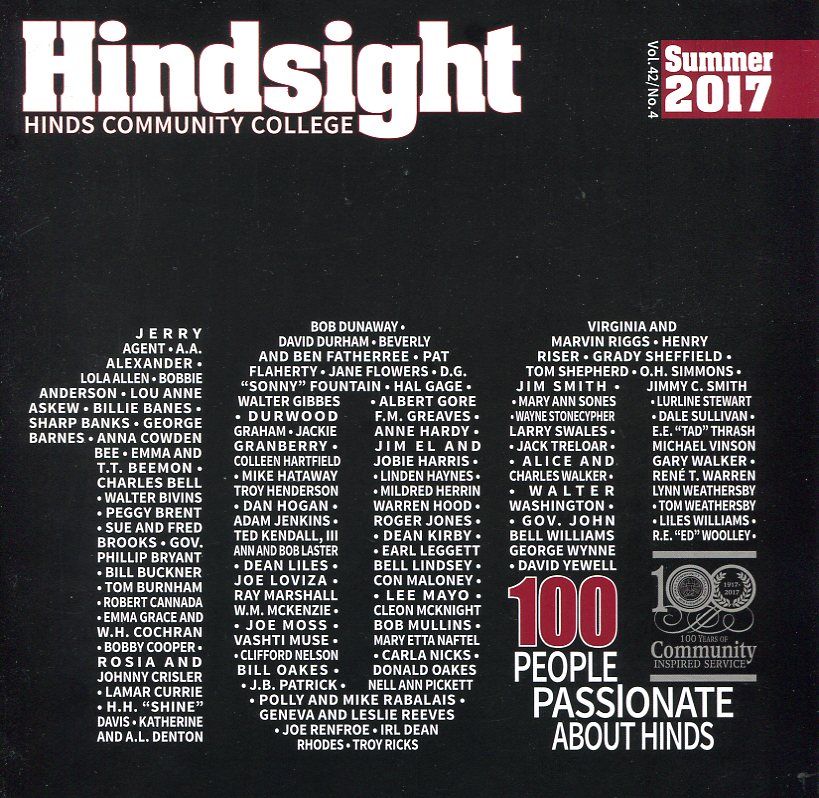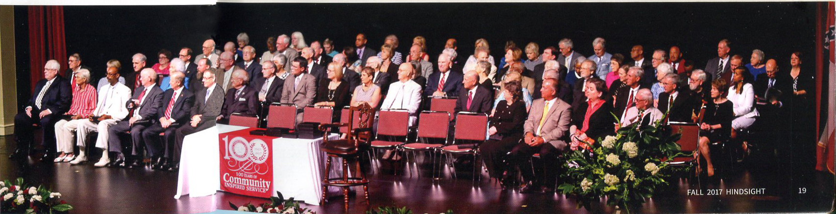 In 2017, Hinds Community College selected 100 People Pasinate about Hinds. Second from left in red tie, Durwood Graham, LSU football star, coach at Hinks and other school is the grandson Ada Victoria Graham. Ada was sister of Rufus F. Conrad, wife of Leila Mae Hartley Conrad. Sixth from left over right shoulder of man in white suite, Donald Oakes, son of Fred and Margie Oakes, teacher, principal, ex-superintendent of schools for Warren County and Hinds CC Board Member was chosen.