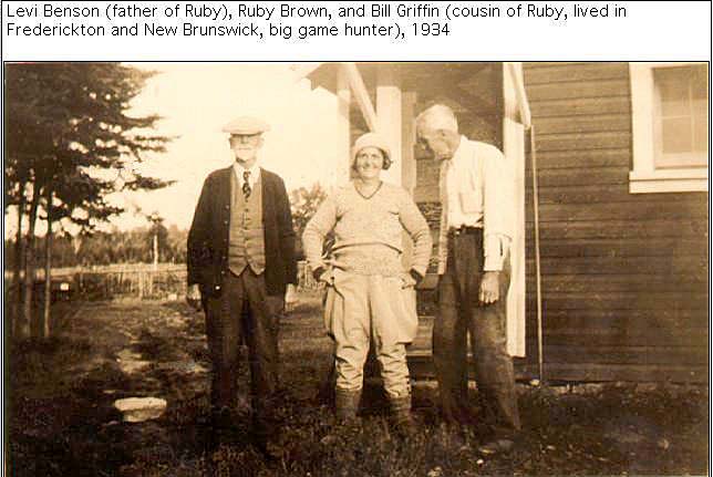 Levi and daughter Ruby Benson & cousin Bill Griffin ( big game hunter from Frederickton and New Brunswick). c. 1934. |