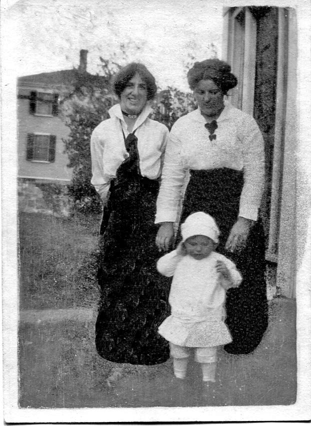 Martha Jane (Jenny) Griffin Follansbee(1868–1936) and Sylvia Avis Merrit (1906–1990) Note: Examining closely the many pictures we have of Alvina Griffin Benson (1860-1934), wife of Levi Benson, I strongly believe this is Alvina, not Jenny. |