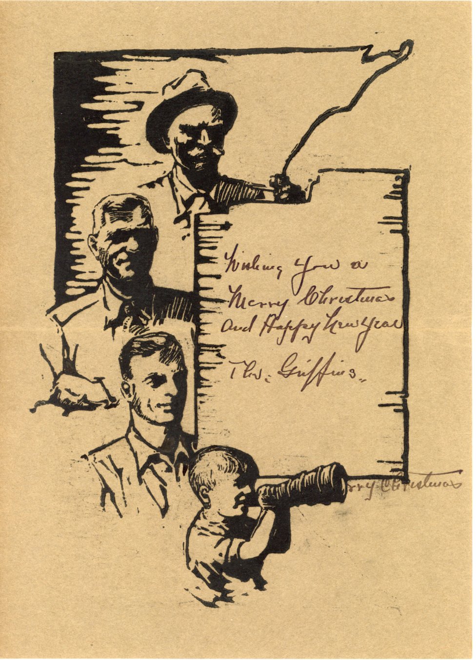 Griffin Christmas Card. Top: William Henry (Old Bill) Griffin, 1853-1942; William Thomas (Wild Bill) Griffin, 1881-1974; . Preston DeForest Griffin, 1909-1995: William Ripley (Billy Boy) Griffin, b. 6/24/1936 |