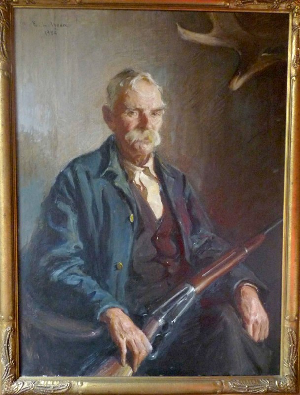 Painting of William Henry “Old Bill” Griffin, by Ernest L. Ipsen (1869 – 1951) an American portrait painter. Ipsen was born in Malden, Massachusetts, the son of Danish parents. He studied at the School of the Museum of Fine Arts, Boston, from 1884-1887. While there, he trained under the painter Frederick Porter Vinton. He continued his training at the Royal Danish Academy of Fine Arts (Danish: Det Kongelige Danske Kunstakademi), from 1887-1891.