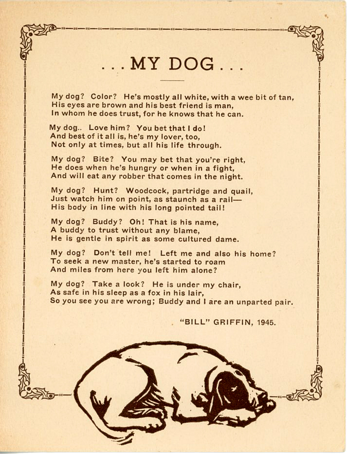 Known as Wild Bill, Griffin was a sportsman, hunter, guide, woodsman, nature lover and writer/poet who lived in New Brunswick near Boiestown and his beloved Miramichi River. He was a cousin of Ruby Benson Brown. Ruby visited there a number of times. The Griffins originally came from Wales, settled in Duchess County, NY, and went to Canada at the time of the American Revolution.