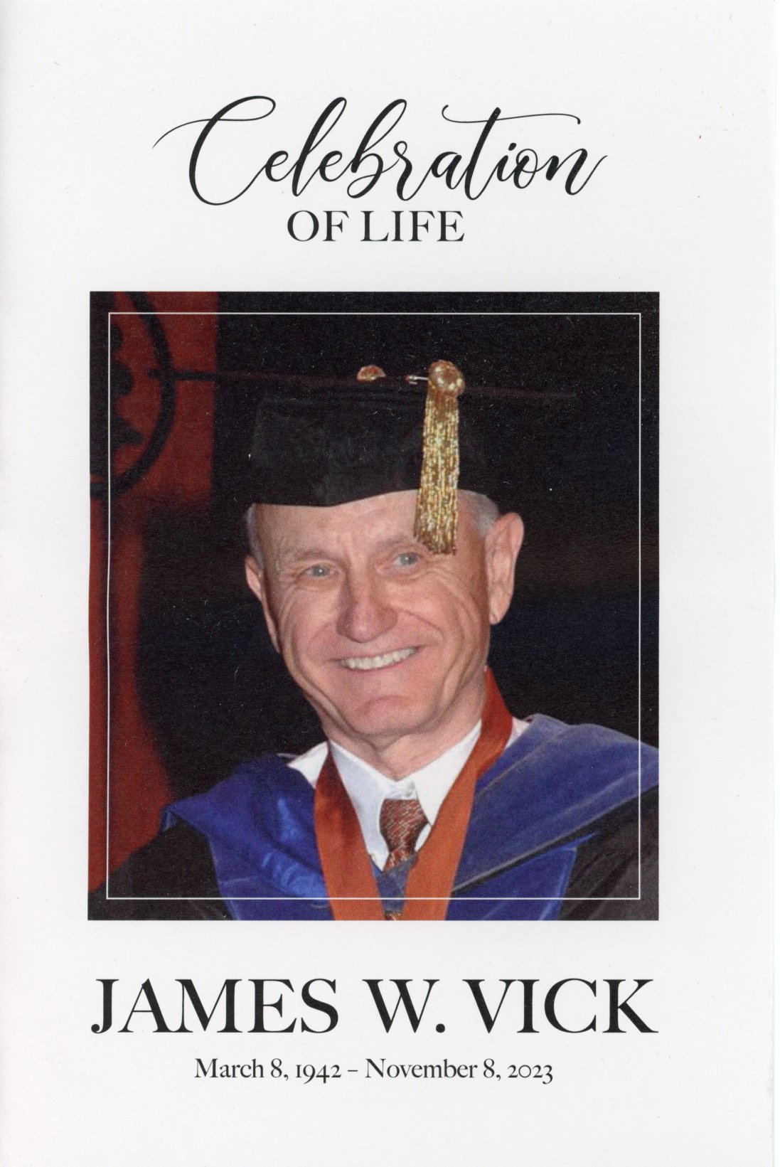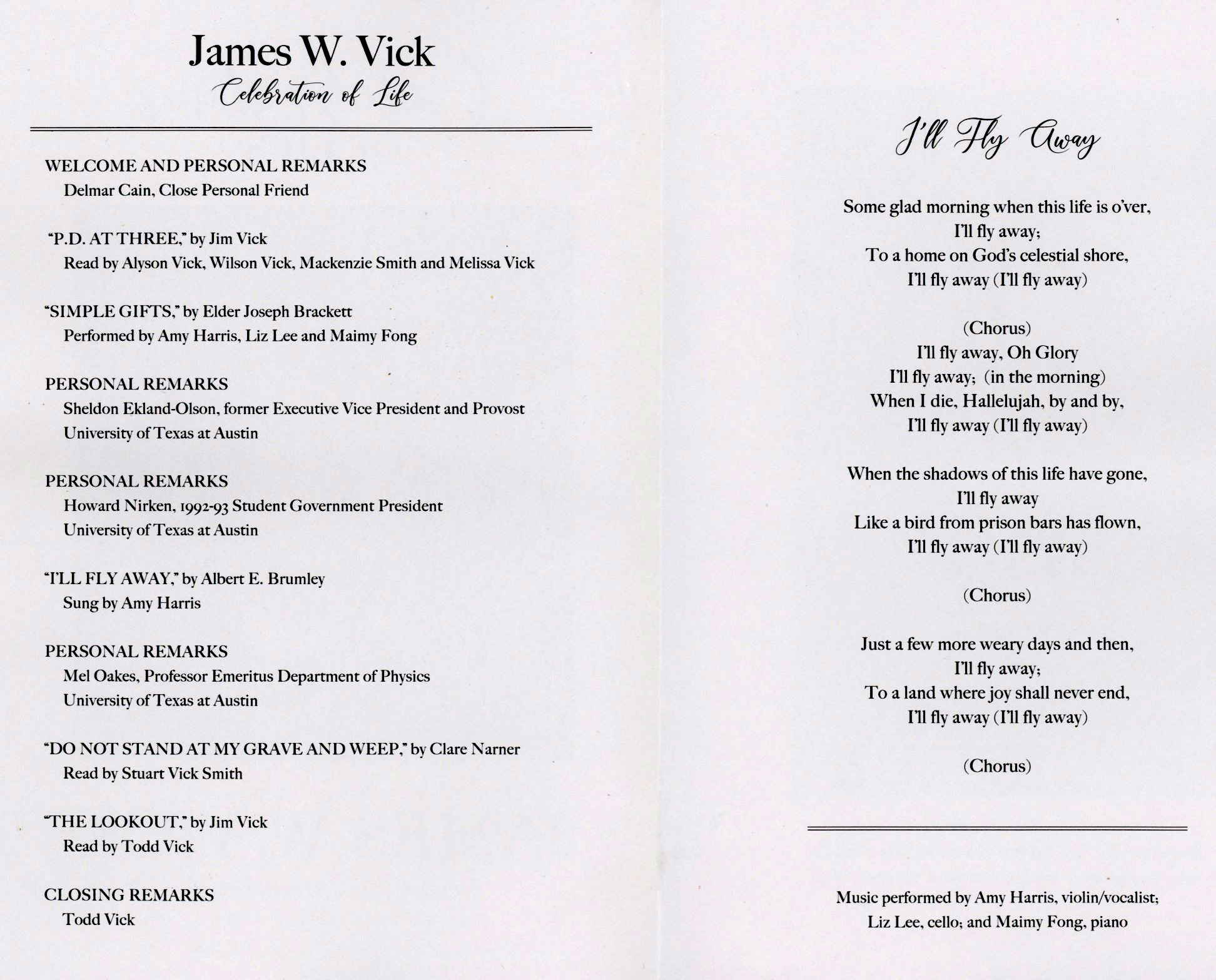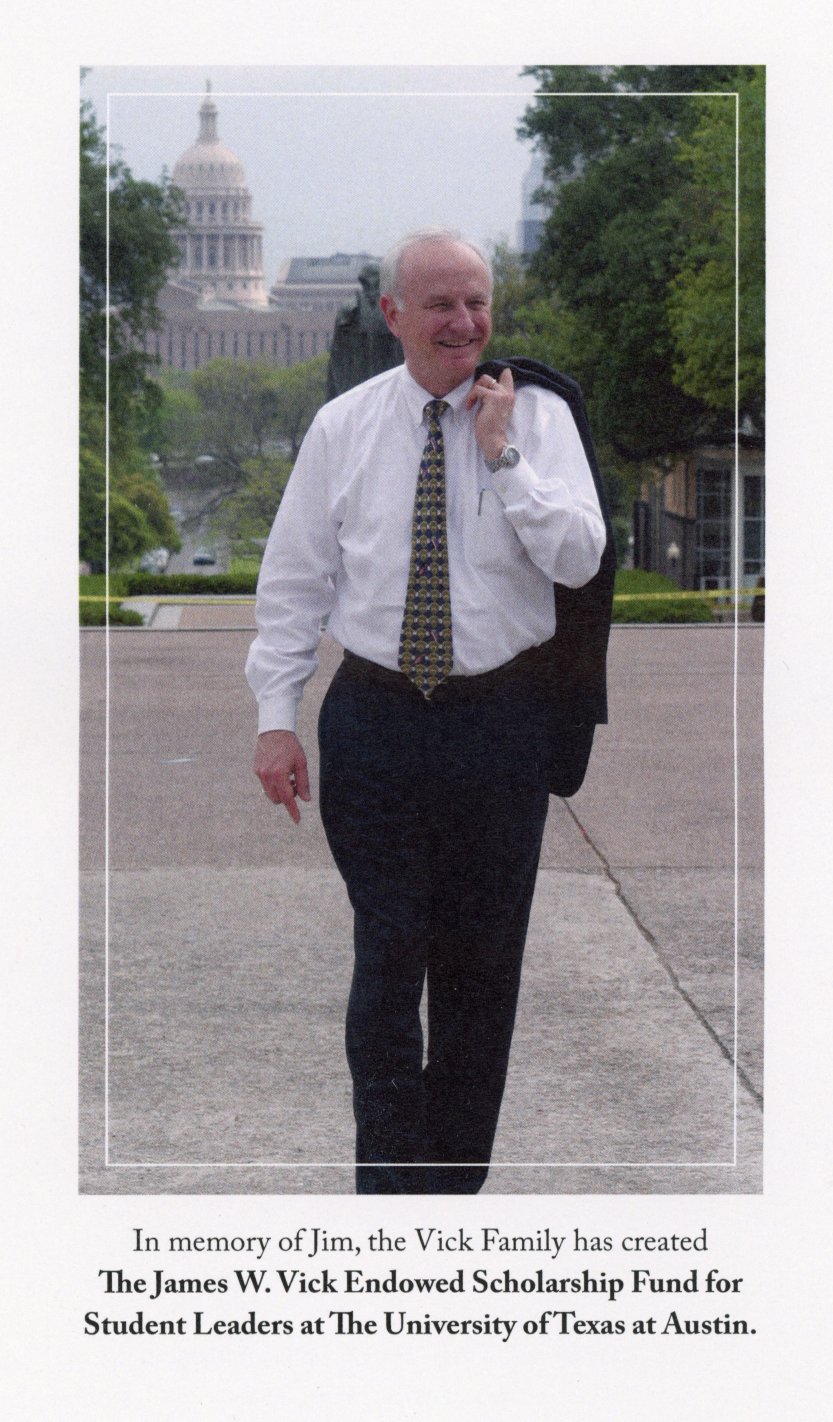 Here is the program from Jim Vick's Celebration of Life held at the UT Alumni Center, January 13, 2024