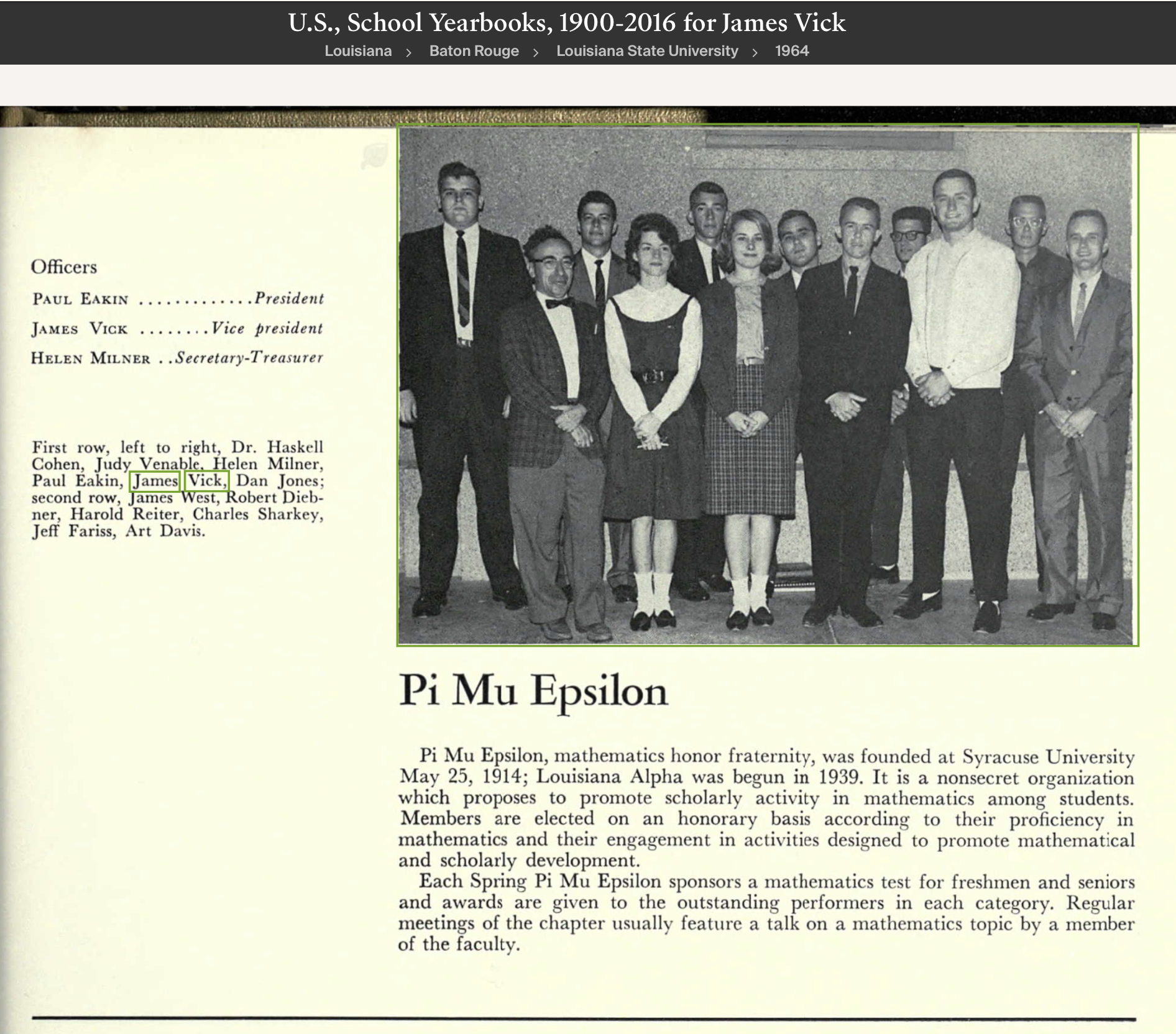 My first contact with the Vick family was in the late 1950s as an undergraduate at LSU, Jim's Alma Mater. As a physics major, I would often see Jim's father, a professor, in the chemistry building. So my first encounter with Jim at UT revealed we had shared a number of professors in math and physics, many were friends of the Vick family and he had great stories to tell.