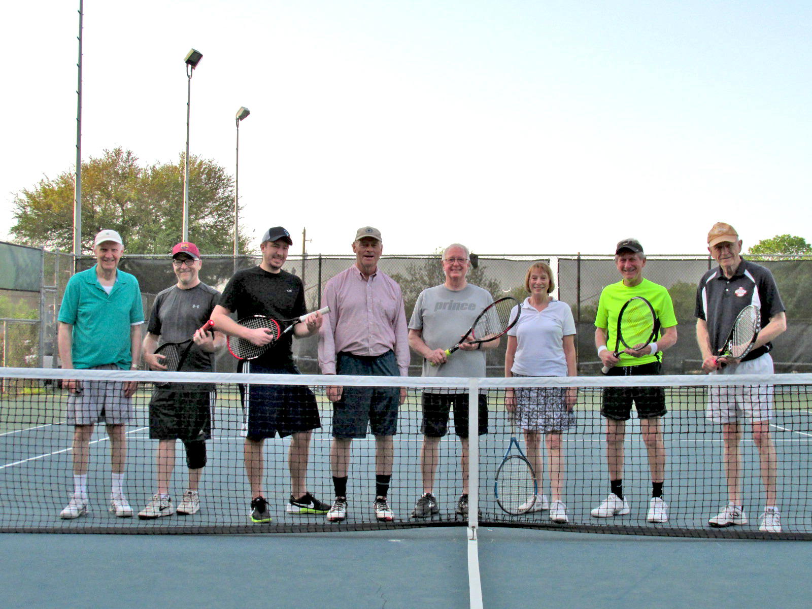 L to R: Austin Gleeson, Jim Harlow, Roger Bengtson, Mark Sullivan, Charles Thrash, Vernon Wong, David Racino, Dick Rew, John Moore, Paul Landry, Mel Oakes. June 7, 2016, Austin High Tennis Courts