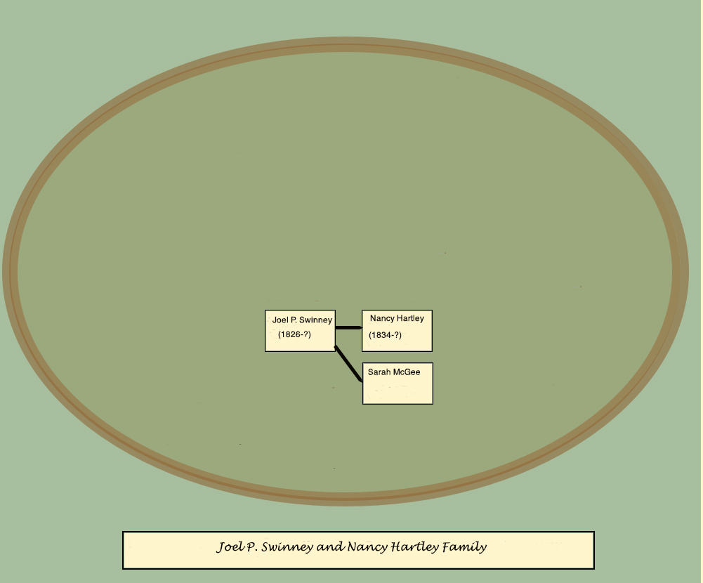 Little is known about Nancy Hartley, other than she was born in 1834 and married Joel P. Swinney (Sweeney) April 2, 1852. Some estimate she died around 1855. Earlier references to the family was speled Sweeney, however as time passes, the descendants use Swinney.