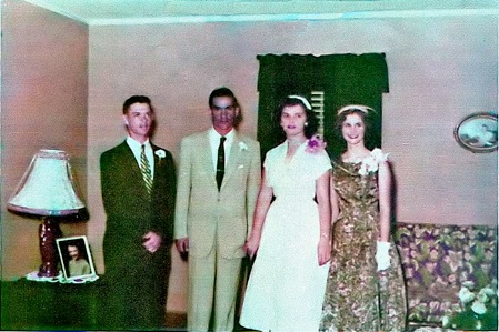 The night I graduated from Carr Central I got on my travel-loaded, and gassed motorcycle and left town while graduation celebrations were still in full swing. I rode all the way to Sheppard Air Force Base in Wichita Falls, Texas to see Norman. I brought him up to date on my situation, but I still was undecided about which path to take in military. The only way to stay around was to join the National Guard, Naval Reserves or relent and go to college. I honestly believe as confused as I was at the time, I would have flunked out the first semester of college. I decided that if I were to go into the army, I would take basic at Camp Chaffee, Arkansas. Maybe if I didn’t get sent straight to Korea, I might get stationed for a while in Louisiana or Georgia where I would stand a better chance of running home on a weekend to see Maxine. Maxine and I were married three months alter her graduation. (Picture below.) Norman was my best man, and Doodle was one of my ushers. I did get to Norman and Helen’s wedding to serve as his best man.(Norman had met Helen in 1954 while stationed in Lake Charles, LA. They married the following year.–Mel) We left Doodle to watch after things in Vicksburg while we were away. Nine months later, Maxine joined me at Kodiak Naval Air Station, Kodiak, Alaska.