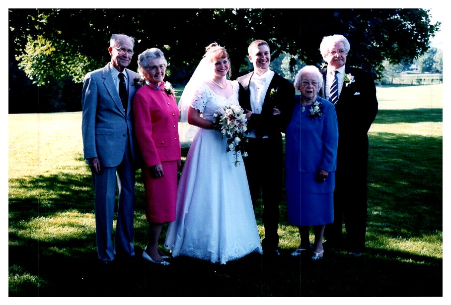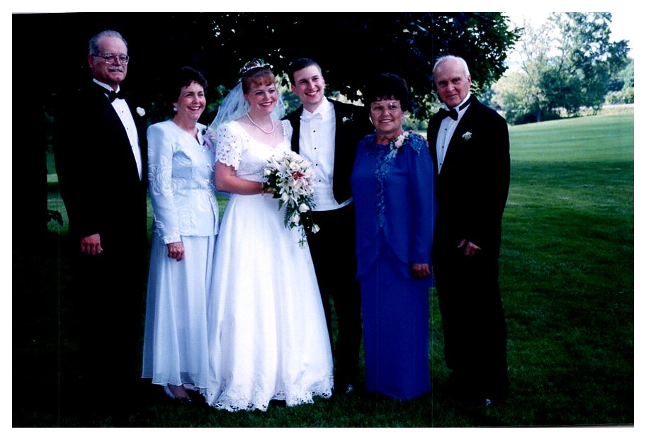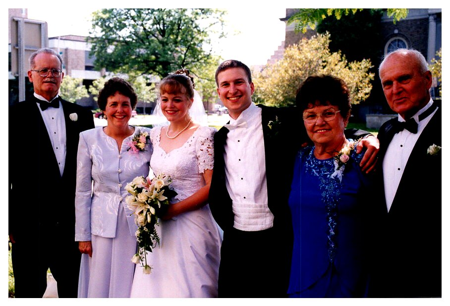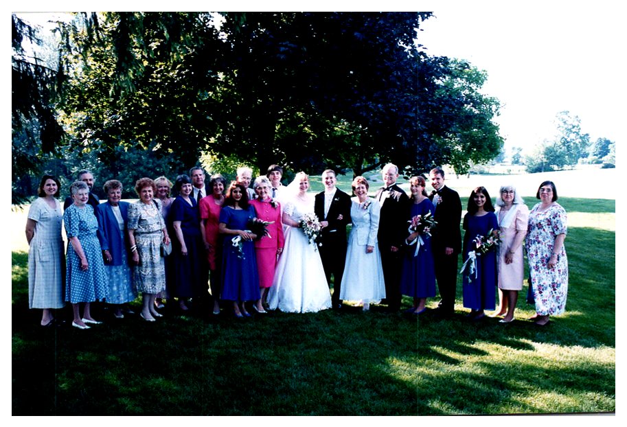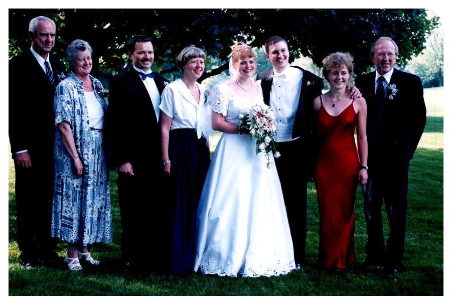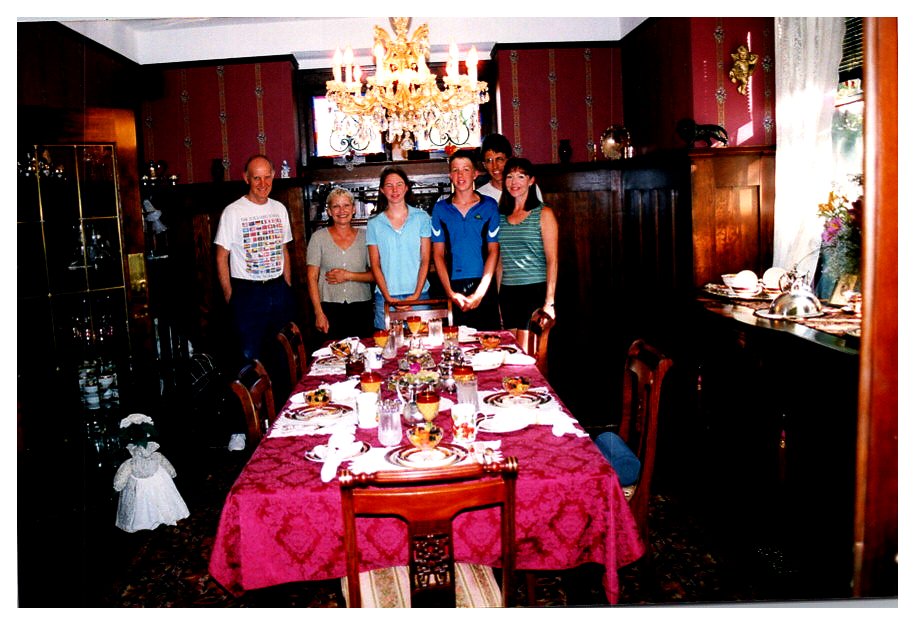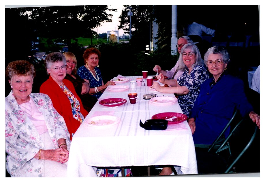 1998 June-July11 Rehersal Dinner at Quagmire Manor. Cody, Laura May, Judi Medeiros, Florence Caldarone, Robert Hanson, Martha Koziol, Lois Winter.