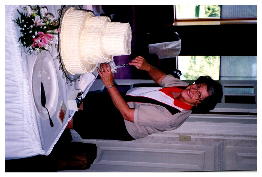 1998 June-July14 Pat Oakes decorating her wedding cake.