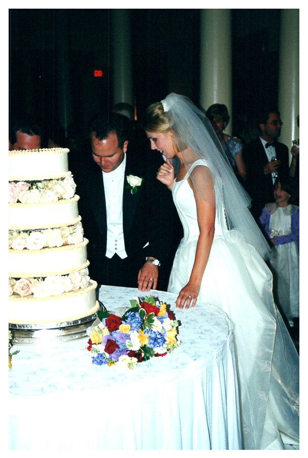 2000 Dec(99)-June76 David and Ali Rusing Martineau at wedding cake.