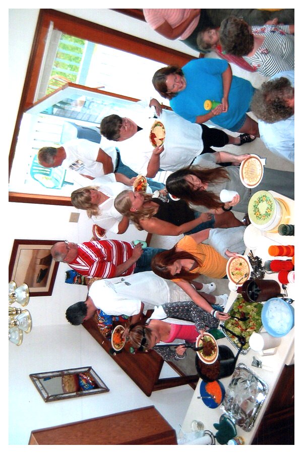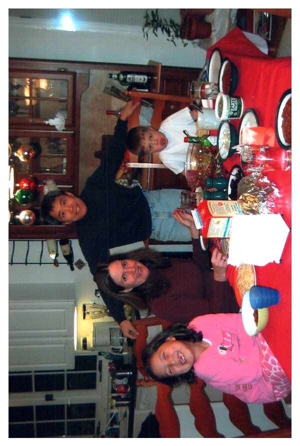 2007 Feb-Aug87 Taco Salad at Oakes Villa. Front: Beth, Teresa, Alicia, Shanti (Blue), Back: Jay, Carla's mom, dad and sister, Doug. Robert and Sandra, lower left corner..
