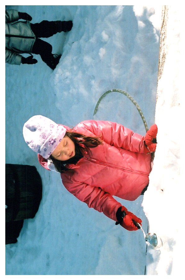 2007 Feb-Aug93 Emily Buck having corn on the cob, Giant Ridge reunion, Biwabik, MN