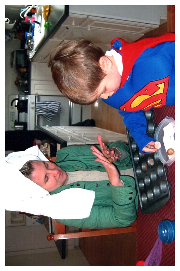 2007 Feb-Aug30 Mardie and Ethan baking bacon fat gingersnaps.