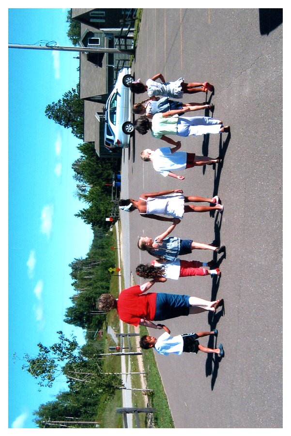 2007 Feb-Aug90 Emily and Ethan, post talent show. Ethan did a cartwheel. Giant Ridge reunion, Biwabik, MN
