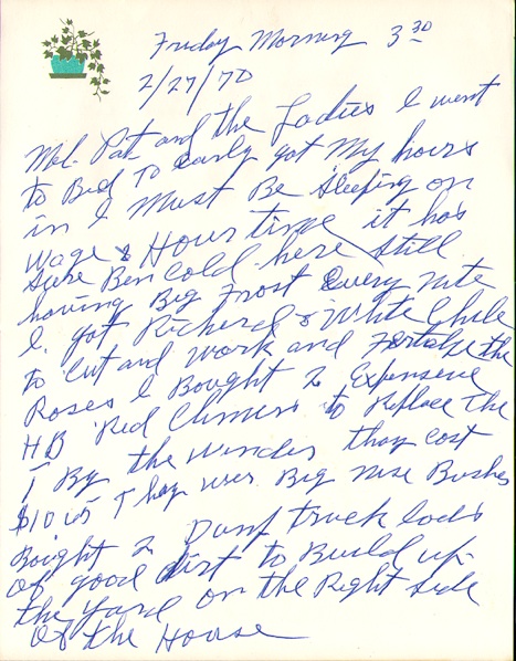February 2, 1970. Very rare letter from Fred Oakes to "Mel, Pat and the Ladies."