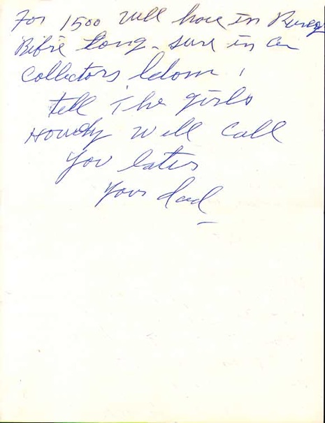Rare letter from Fred Oakes to “Mel, Pat and the Ladies.”