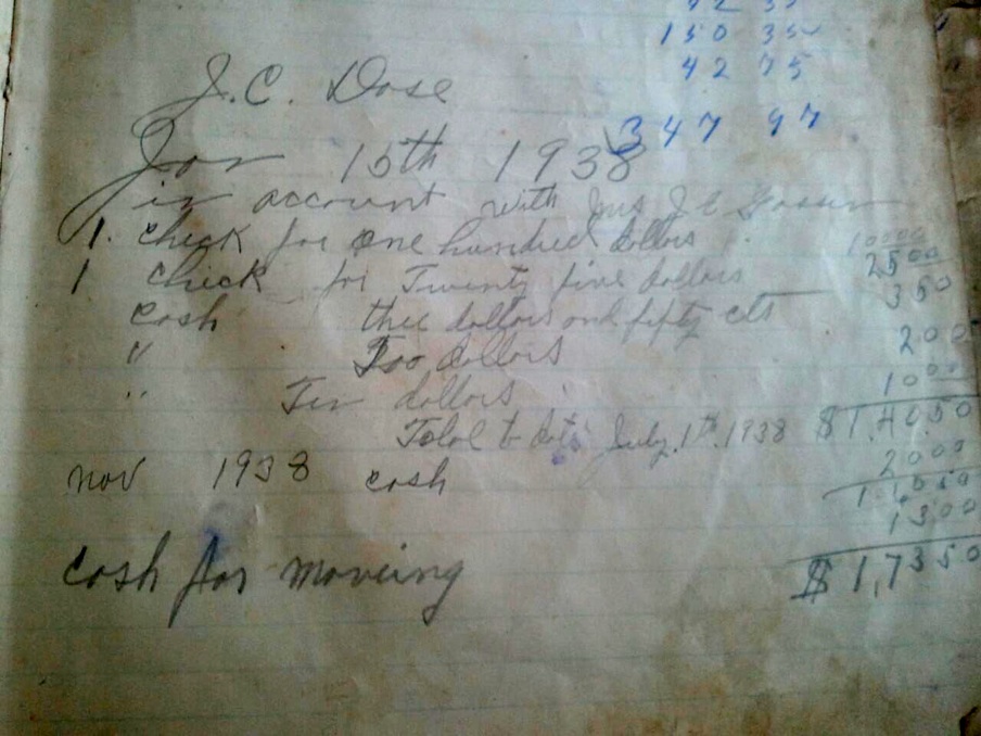 Entry fro J. C. Dose, uncle of Fred Oakes.