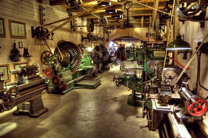 At right we see and example of such a belt driven shop.