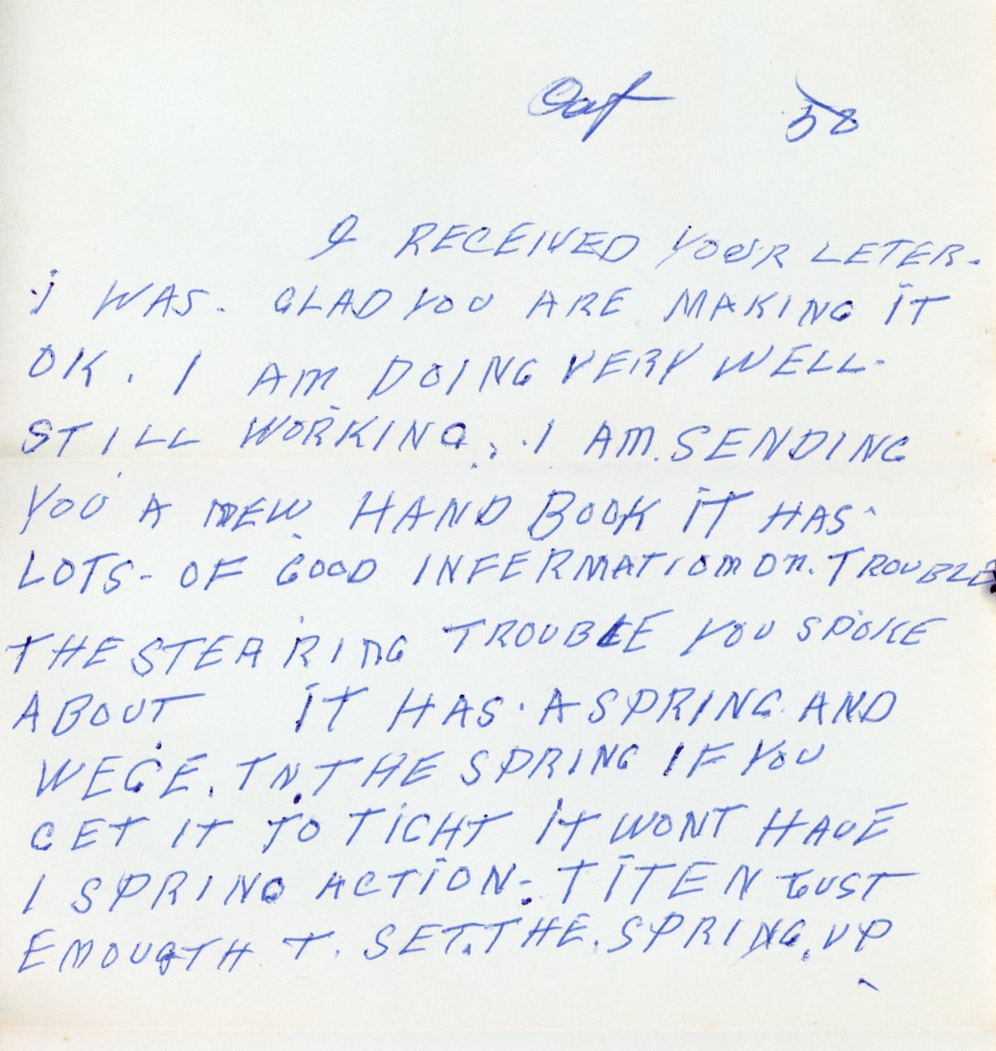 He continued to do some repairs on engines, transmissions, springs and mufflers, however, these were a small part of his operation, and he accepted less and less of this kind of work.
