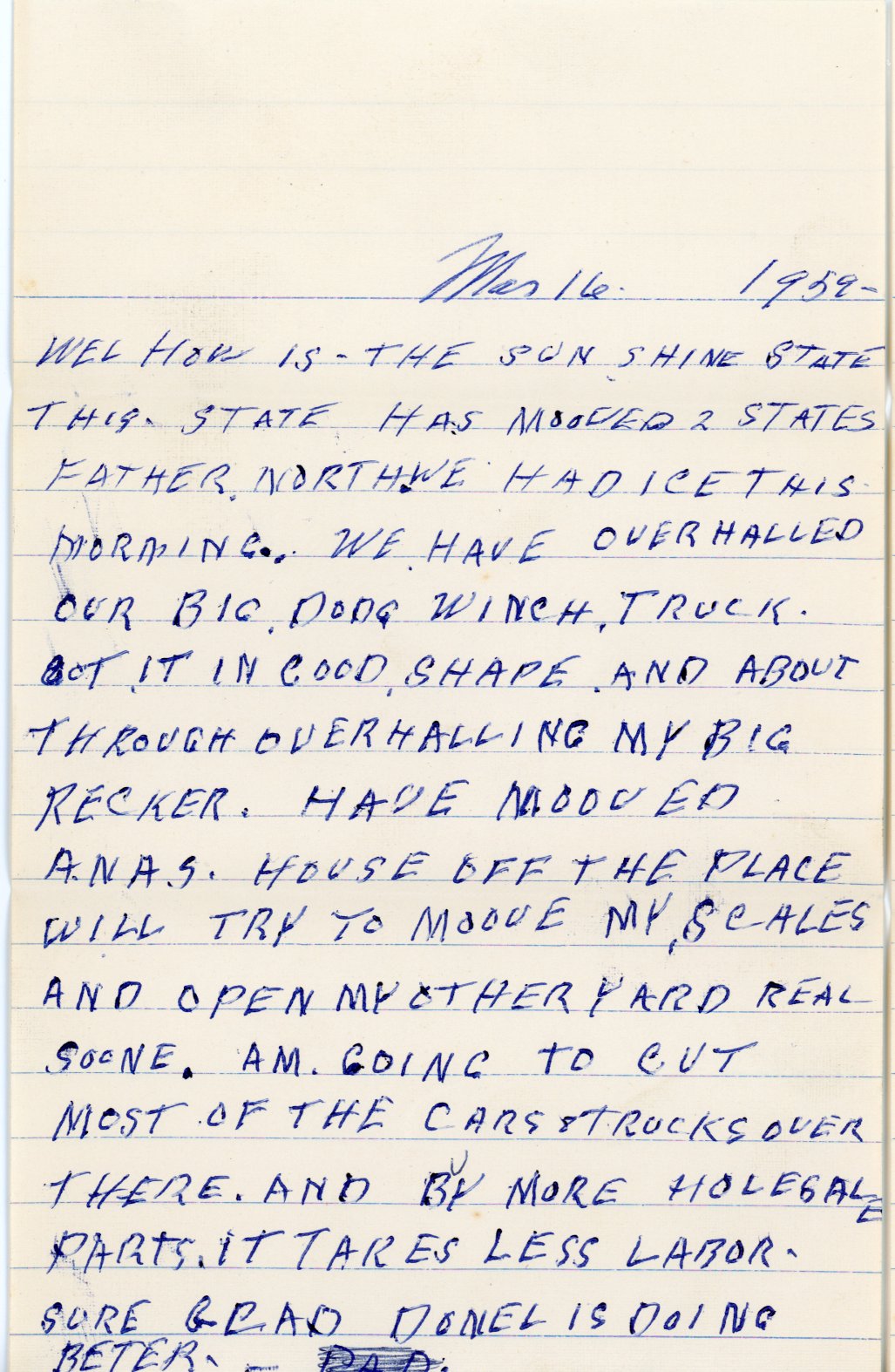 Letters from Fred Oakes to his son, Melvin Oakes. March 16, 1959