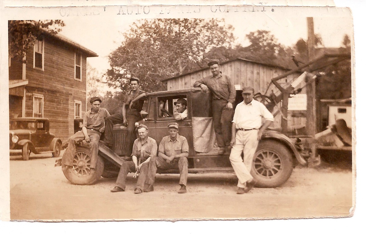The wrecker was called the “Mae West”. Fred’s brother, Christian, on the front fender, and brothers-in-law, Marvin and James Hartley, on front of running board and driving respectively. Arnold (Popeye) Graham, is on the hood, William M. Reed is sitting on back of the running board. James C. Deason is standing next to Fred Oakes, white shirt. You may wonder how Fred Oakes, in the middle of the Depression, could afford six employees. His answer “They worked six days a week, but I could only pay them for one, and they were happy to have it.”