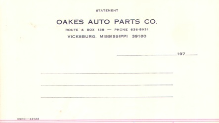 Oakes Auto Parts, Kings, MS