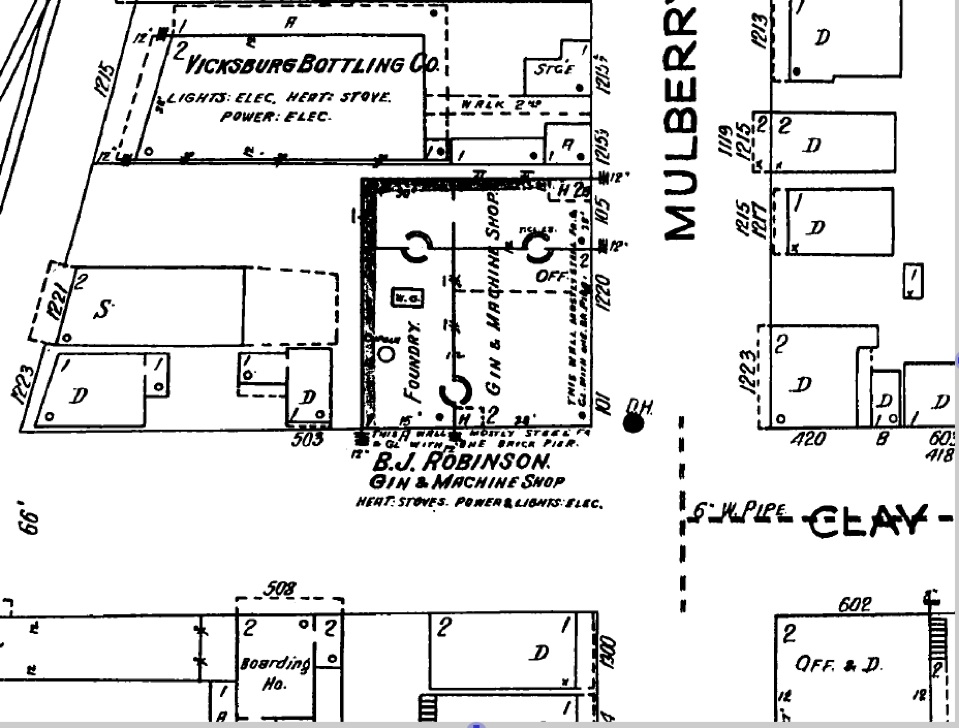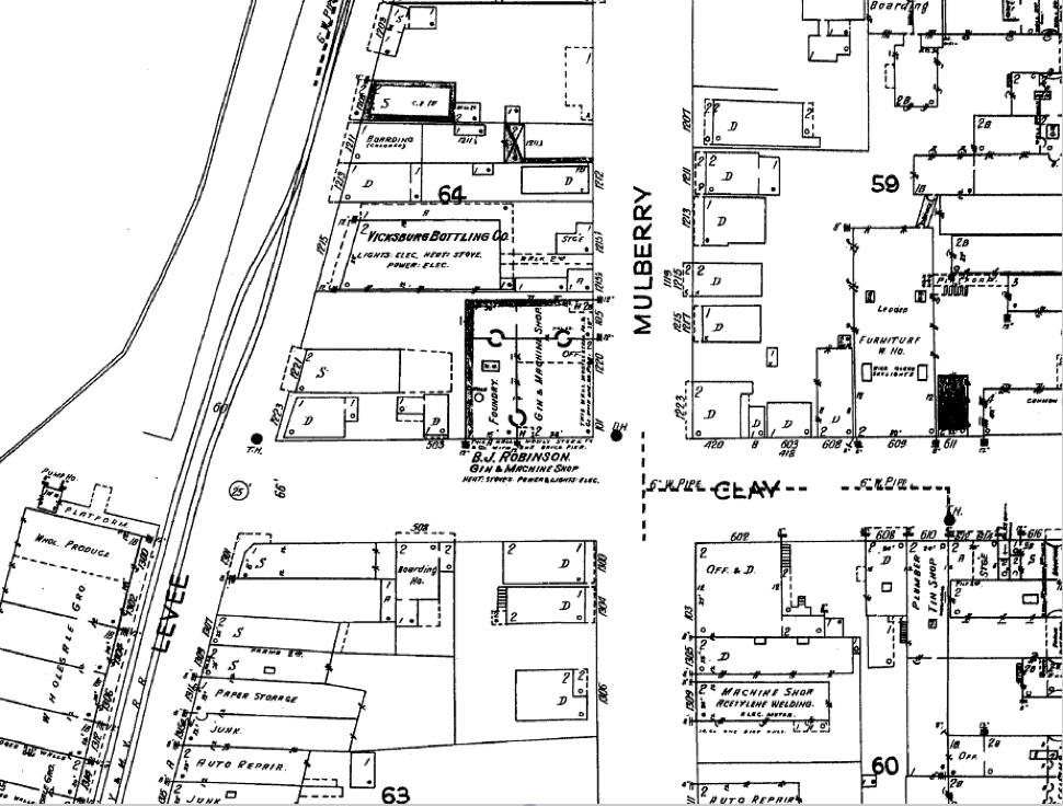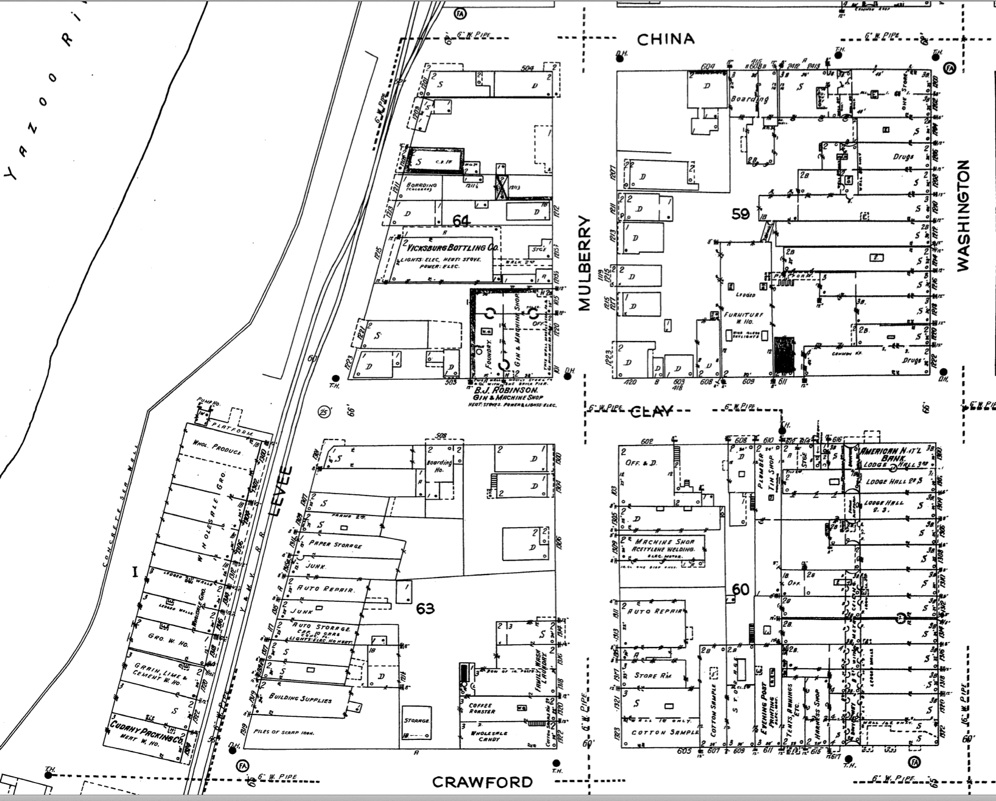 For quite some time, the exact location of the shop was in doubt, however in May of 2021, by chance, I found an aerial photo taken on April 14, 1932. I purchased the online high resolution version from the National Archives. The photo is in the timeline below. Another aid was the 1935 Vicksburg City Directory. Here are some important listings;
