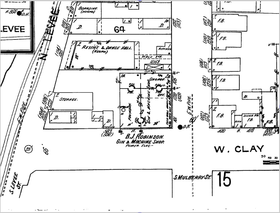 The property at Mulberry and Clay that Fred Oakes bought in 1938. These are from 1913 Sanborn Fire Insurance Mapsnwood shop.