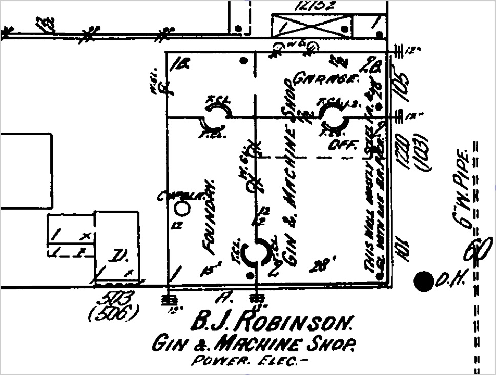 The B. J. Robinson Gin and Machine Shop became the Oakes Auto Parts Shop.