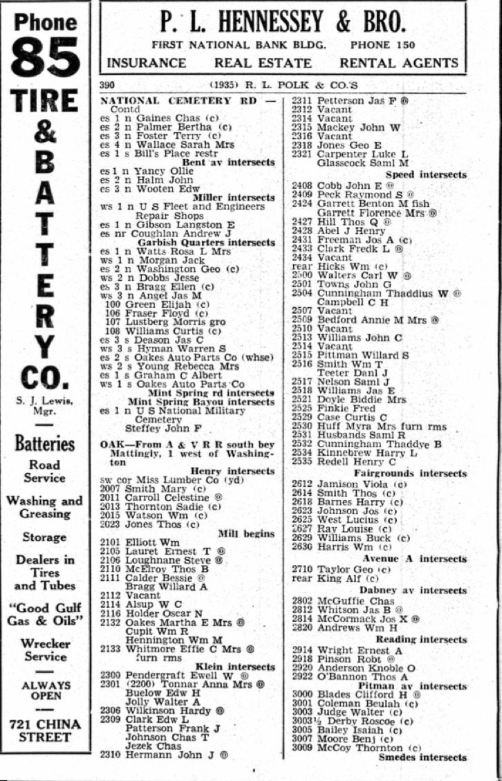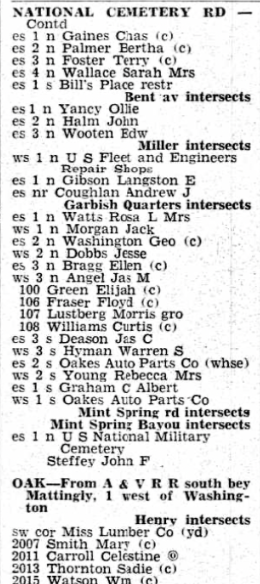 Oakes Auto Parts Company, (Fred F. Oakes) , ws (westside) 1, National Cemetery Road, s (south) of Mint Springs Bayou.