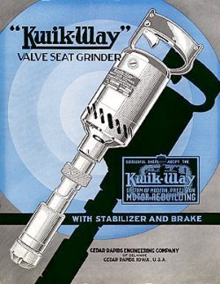All companies are started because someone identified a problem then came up with a solution. In the case of the Cedar Rapids Engineering Company (Kwik-Way), there was no precise way to scientifically recondition a valve or valve seat of an automobile engine in the early 20th century. The methods employed were extremely crude and provided marginal results at best. The company's founders recognized a need for a precision way to perform this required service. and after much trial and error, they developed the Kwik-Way principle of cylinder head reconditioning. In 1920, the first Kwik-Way valve refacer was sold. At the heart of the machine was the now famous Kwik-Way Six Ball Chucking System. The sales literature for this revolutionary new machine called the new chucking system a "masterpiece of modern mechanical engineering". The company's founders were, in fact, highly educated engineers, and the chucking system they developed in 1920 is still the world's most accurate chuck for reconditioning valves. The valve seat grinders that were developed are also still recognized as the best in the industry. These two products differ somewhat today from what was sold in 1920, but the original design concepts remain intact in today's current production units. Our estimates indicate that Kwik-Way valve refacers have reconditioned over 2,500,000,000 valves since first introduced in 1920.
