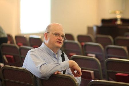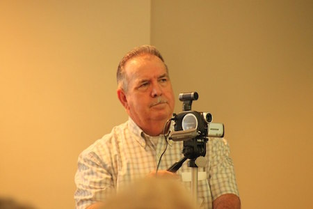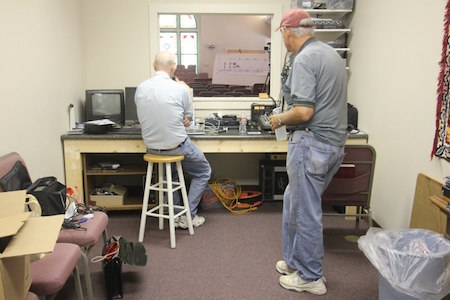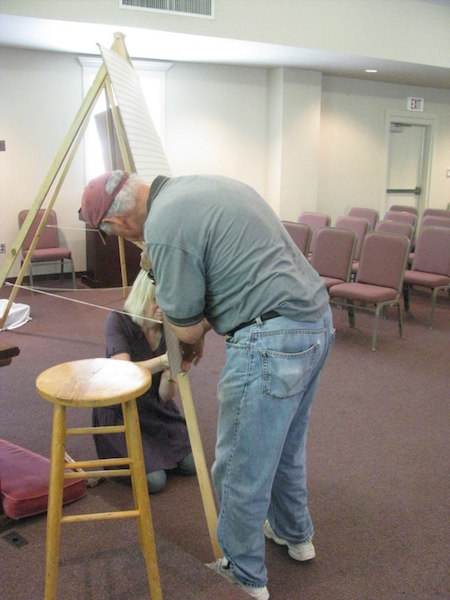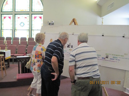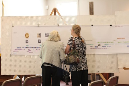 Donald Oakes setting up display boards.