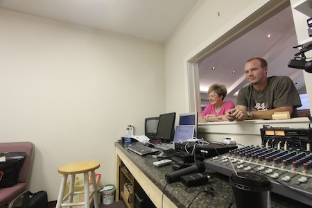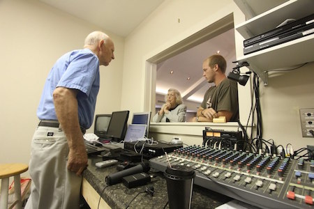 Mel Oakes, testing projector.