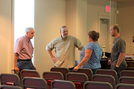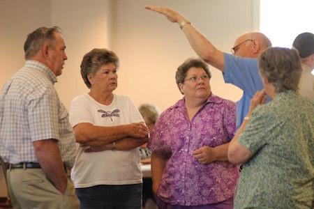 Gathering for talk.