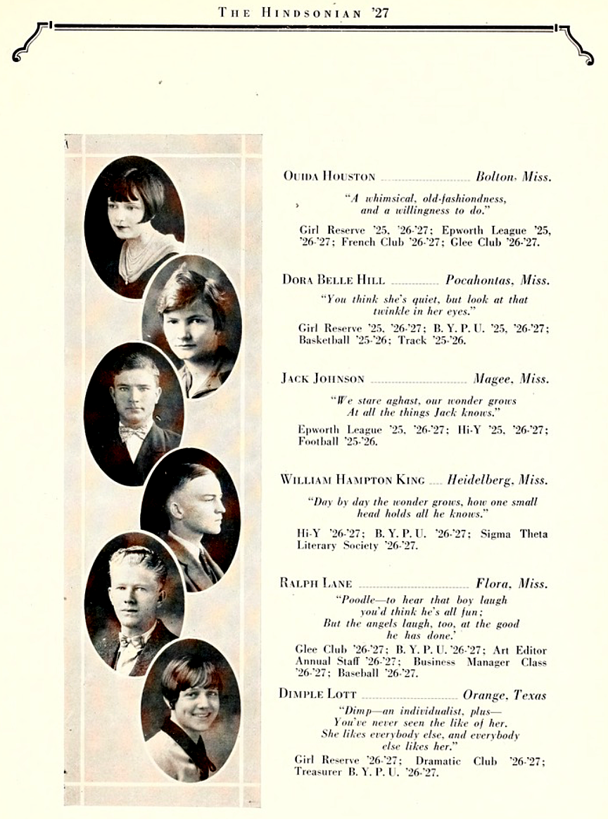 Dora Belle Hill, Hinds Junior Collge, Raymond, MS, Class of 1927.